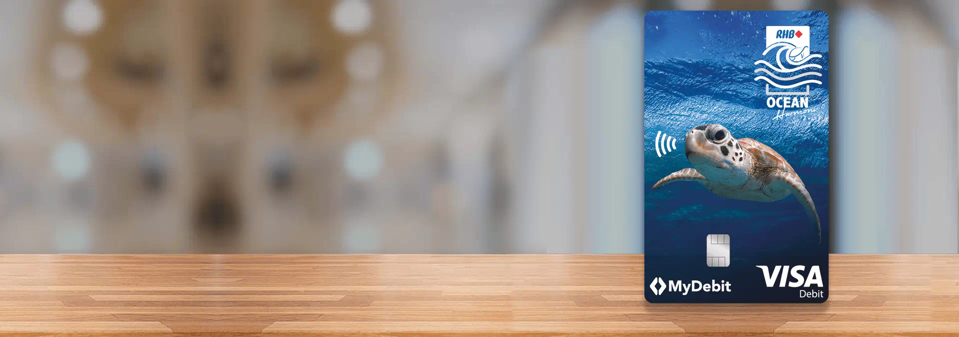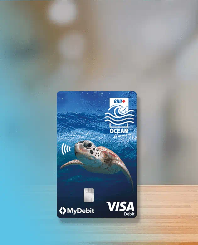 Our RHB Ocean Harmony Debit Card-i contains recycled polyvinyl chloride (PVC) to reinforce sustainability efforts.