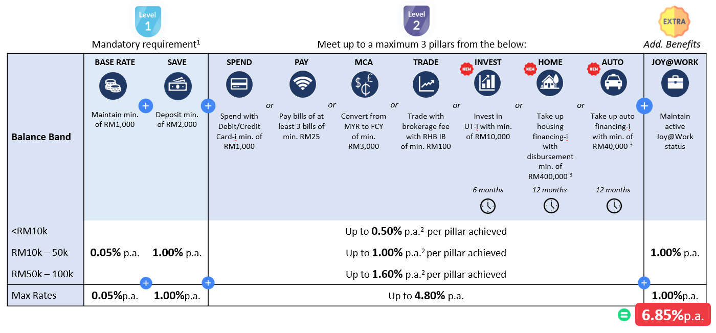 In order to enjoy PAY Bonus Rate, you must meet SAVE criteria as per below first before you are entitled for the PAY Bonus rate:-