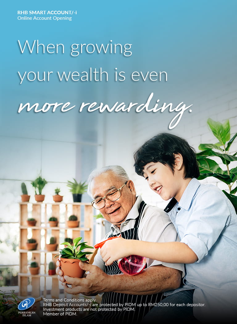 For example, RHB’s high-yield accounts, such as the Smart Account/-i, provide additional returns when you maintain a minimum balance, credit your salary, pay, spend, finance, trade or convert with it.