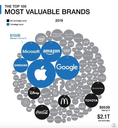 Source : Visual Capitalist, Animation: How Tech is Eating the Brand World, 7 November 2019