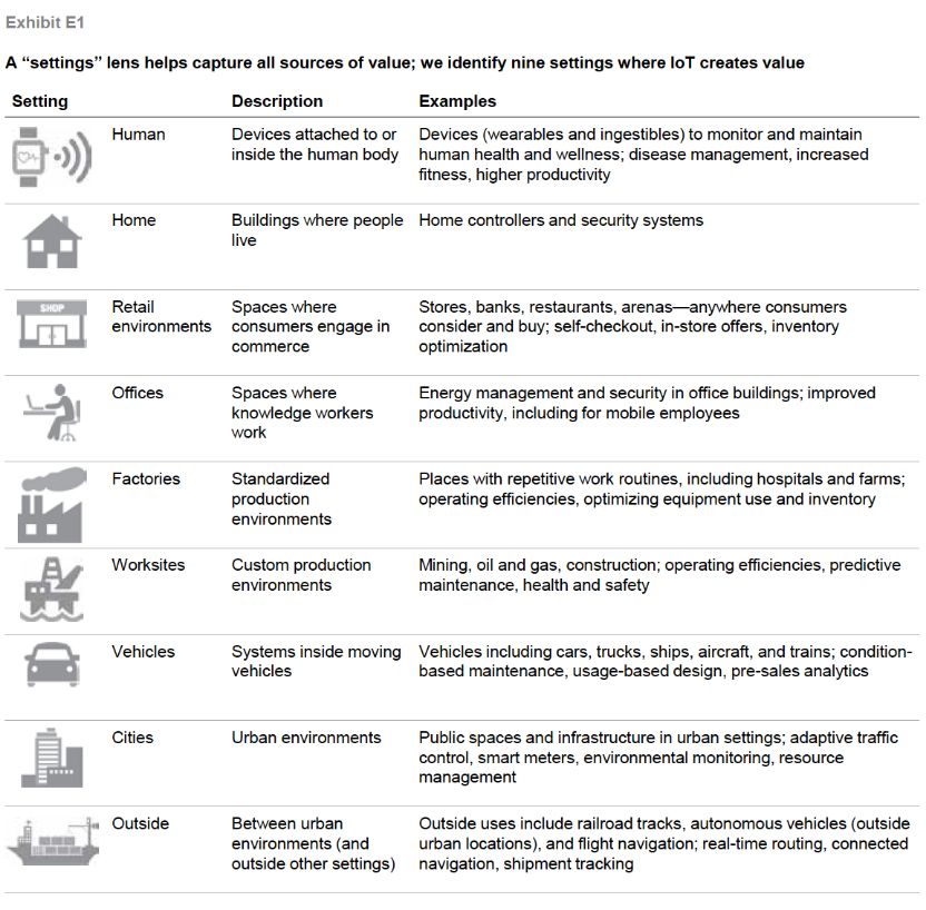 Source : McKinsey Global Institute, The Internet of Things : Mapping the Value Beyond the Hype, June 2015