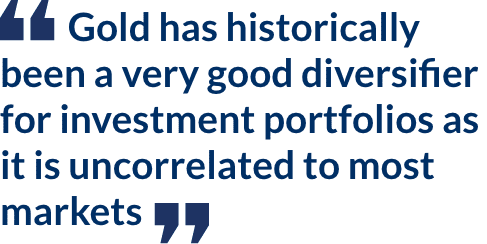 Gold has historically been a very good diversifier for investment portfolios as it is uncorrelated to most markets. Recent moves have served to reinforce its status. RHB Asset Management Sdn Bhd says investor interest in gold exchange traded funds (ETFs) and gold equities has increased as concerns abound about equity markets throughout the world having peaked.