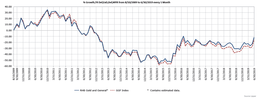 For investors seeking exposure to both gold and other base and bulk metals, there is an option in the form of the RHB Gold and General Fund. Another feeder fund, it invests into the United Gold and General Fund. According to RHB’s June 2019 fact sheet, the fund invests in companies that are primarily involved in the mining or extraction of precious metals, bulk and base metals, other industrial commodities, as well as oil, gas, coal and alternative energy.