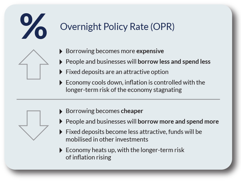 It’s all a delicate balancing act. When BNM raises the OPR, borrowing becomes more expensive. People and businesses will borrow less and spend less, which cools down the economy and helps control inflation. When the OPR is lowered, the opposite happens. Borrowing becomes cheaper, encouraging households to buy homes or cars, and businesses to invest and expand. At the same time, savings in fixed deposits become less attractive, nudging people to mobilise their funds for other investments.