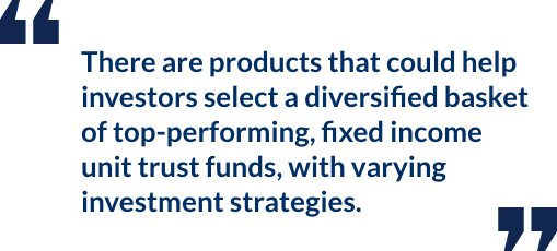 There are products that could help investors select a diversified basket of top-performing, fixed income unit trust funds, with varying investment strategies. The structured investment returns will be based on the performance of the underlying funds with the multiplier effect known as participation rate. The participation rate ranges from 100% to 200% for example, on the underlying funds selected.