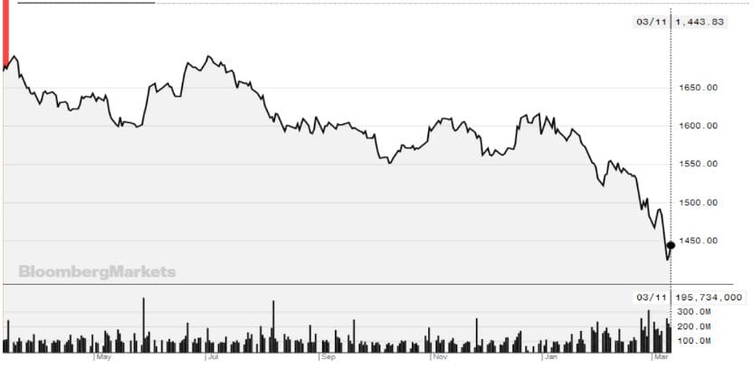 Looking at the FBMKLCI over a year-long period, we can see that since July 2019, the market has been on a downward trend, with occasional bumps upwards. We can follow the trend all the way back to 2018.