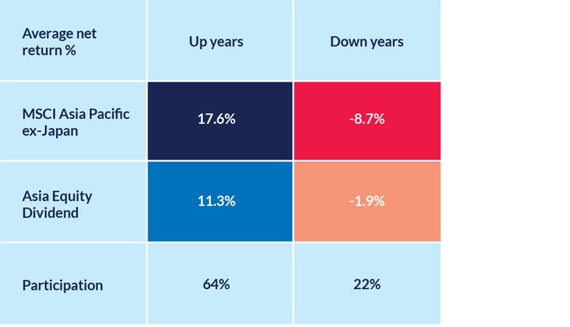 Note: ‘Up years’ include the 5 years 2014, 2016-2017 and 2019-2020 when MXAPJ rose. ‘Down years’ include 2015, 2018 and 2021 when MXAJP fell.