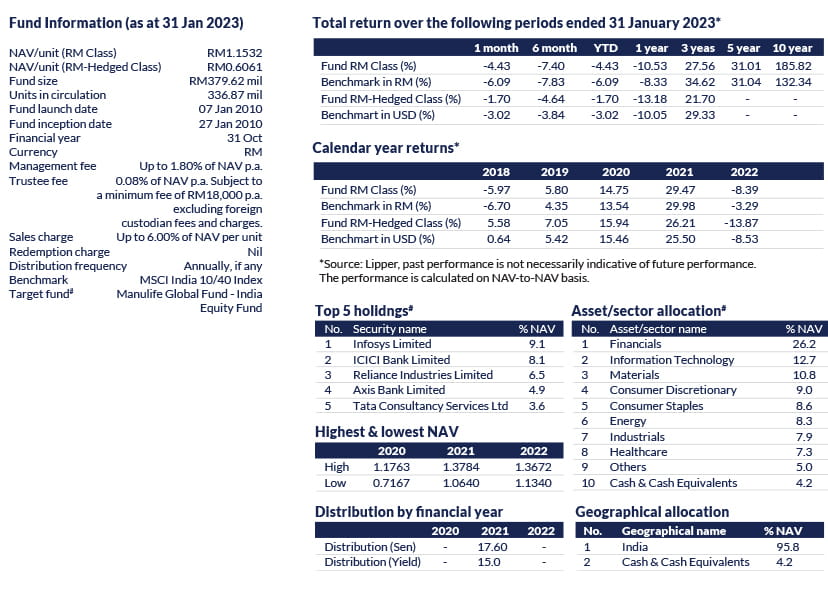 Source: Manulife India Equity Fund fact sheet as of 31 January 2023