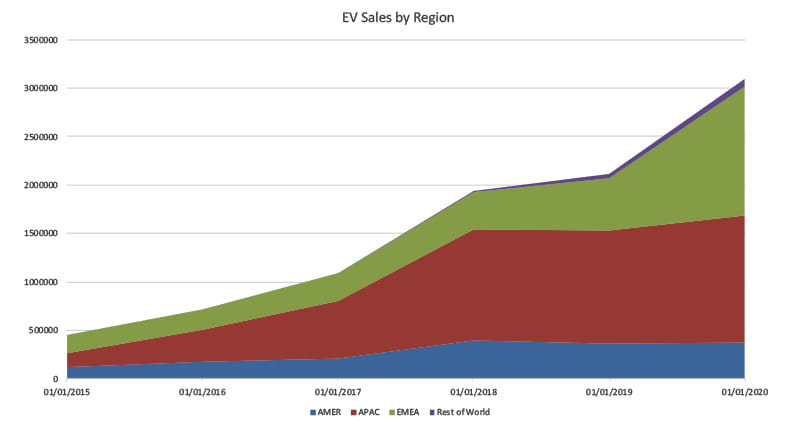 Europe has seen remarkable growth, with overall sales increasing by double- digit percentages year-on-year in most countries. The main driver behind the growth in EV demand and production over recent years is due to the surge in demand from Chinese consumers.