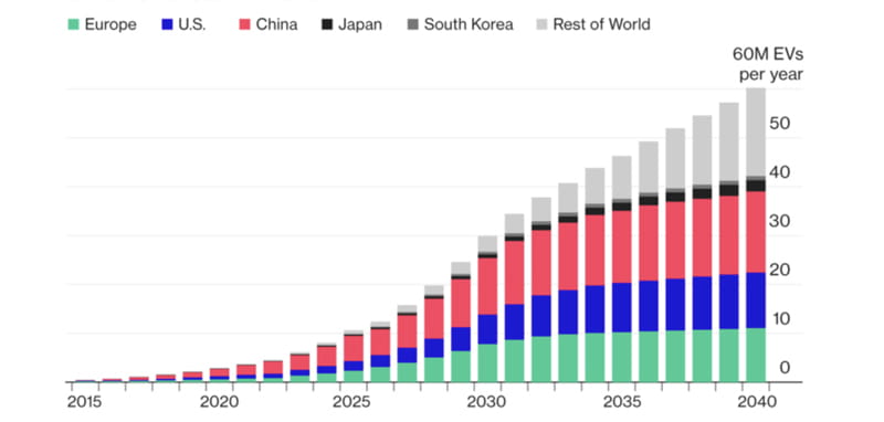 As more countries continue to pledge to achieve net-zero greenhouse gas emissions, and as technology continues to develop and mature, it is all but assured that the EV revolution is here to stay. Studies estimate that EVs will hit 10% of global passenger vehicle sales by 2025. The number will increase to 28% in 2030 and 58% in 2040.