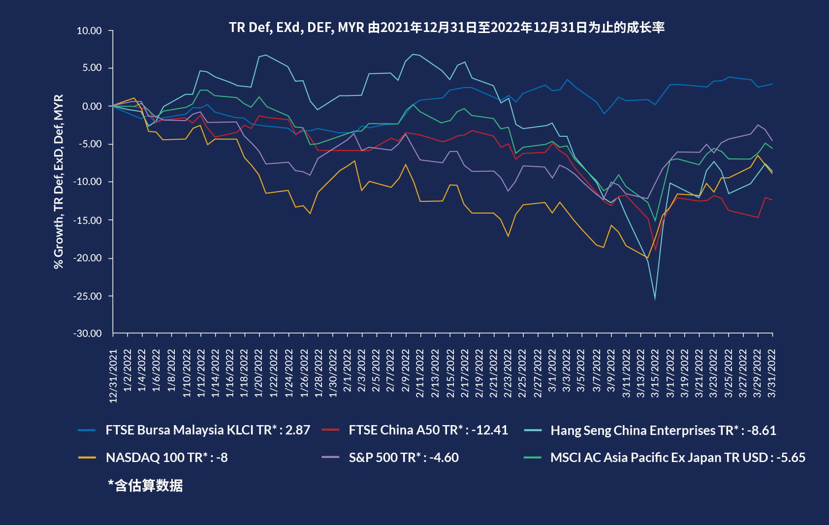 今年首季,对股市来说是一个充满挑战的季度。几乎所有主要市场都反映出负回报,并在3月中旬触底。尽管美联储(Fed)在首次宣布加息后出现反弹,但这对市场在本季度结束时处于负值的状况无济于事,起不了扶盘作用。所幸,富时大马吉隆坡综合指数在本季度结束时,仍录下2.87%的正值。