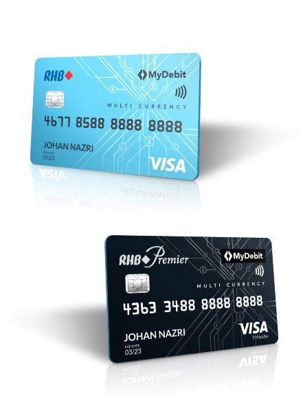 RHB Bank is the first Malaysian bank to introduce a Multi Currency Visa Debit Card which offers access to 13 foreign currencies alongside the Malaysian Ringgit: Japanese Yen, Pound Sterling, Singapore Dollar, Australian Dollar, New Zealand Dollar, Euro, US Dollar, Swiss Franc, Hong Kong Dollar, Canadian Dollar, Saudi Riyal, South Africa Rand, and Thai Baht. The two new cards being offered are the RHB Multi Currency Visa Debit Card and the RHB Premier Multi Currency Visa Debit Card.