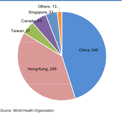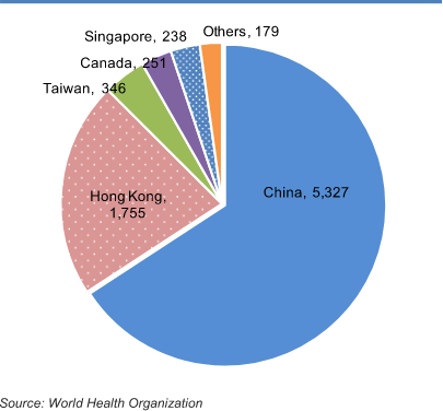 The data shows that infections remain largely contained within China, while those infected outside China are either Chinese nationals or those that had travelled to Wuhan/Hubei. An escalation of person-to-person infections of people outside China would be a major concern.