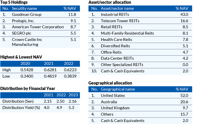 Source: Manulife Shariah Global REIT Fund Fact Sheet as of December 2023