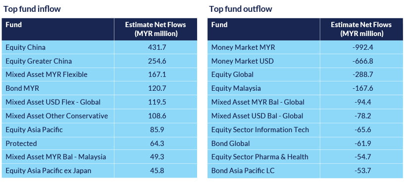 Not surprisingly, the reopening of China saw investors pour money into Chinese equity, with a combined inflow of close to RM700 million. In the fixed income space, we saw more fund flows from the money market to institutional class bond funds (MYR) as investors moved to capture the potential upside in the Malaysian fixed income market. Investors also shifted from Malaysian equity to mixed assets. This is an area we will continue to monitor following the recent RM170 billion investment from China. Emerging market equities attracted investors from developed market equities, eager to reap the benefits from activity in China.