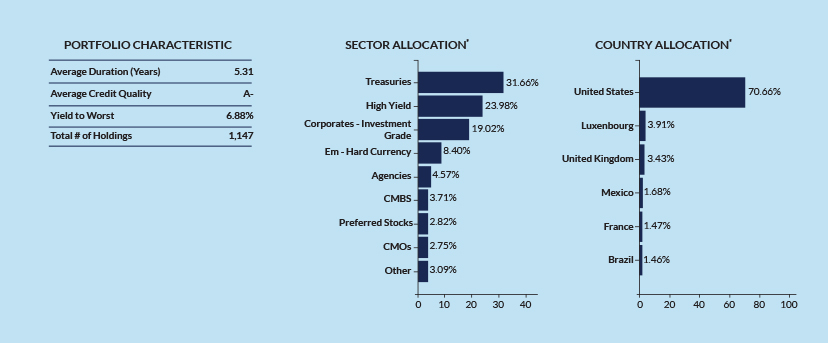 Its yield to worst (measure of the lowest possible yield) is 6.88%, which is quite solid by any means. Its holdings are spread across more than 1,000 fixed income instruments. The fund’s highest exposure is in US Treasury Bonds, which are rated AAA by Fitch.
