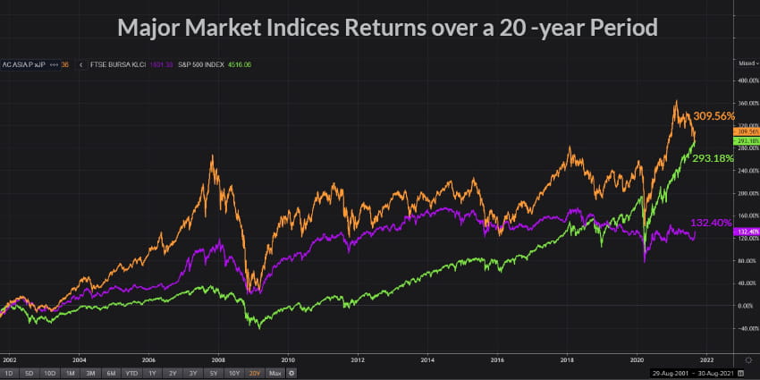 Many investors try to time their entry into the market, but what’s more important is the time in the market. If an investor had entered the market 20 years ago and stayed invested, they would be sitting on a positive position right now.