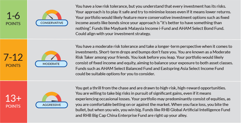 For a more in-depth risk profiling assessment and personalised advice on building a tailored portfolio, we recommend reaching out to your RHB Relationship Manager.