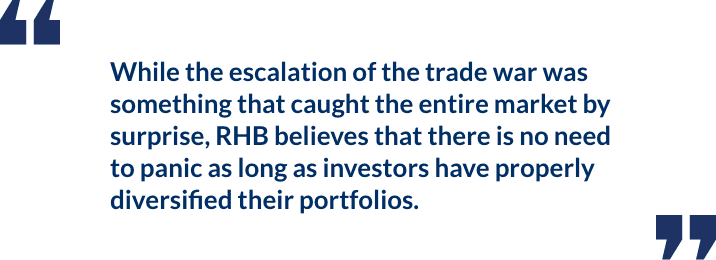 While the escalation of the trade war was something that caught the entire market by surprise, RHB believes that there is no need to panic as long as investors have properly diversified their portfolios. Despite the escalation in tensions between the two global economic superpowers, our approach remains the same. We are optimistic that both countries are able to reach a mutually agreeable deal and that the major themes we identified for 2019 remain intact. Since the start of the year, sector-wise, we have favoured the healthcare and technology sectors.