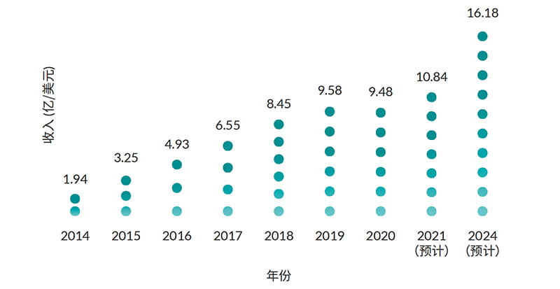 随着收视率的提升,赞助和收入也水涨船高。电竞的大部分收入来自赞助,预计在2021年将达到6.41亿美元之钜。电竞的赞助额也预计将持续增长,特别是在受到渴望与电竞受众接轨的非主流性品牌赞助商的推动下,增幅将更为明显。