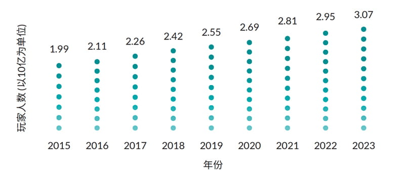 2020年,电竞市场收入高达9.471亿美元。总括而言,肆虐全球的冠病大流行导致人们在全城封锁而足不出户的非常时期,转而通过网络游戏寻求社会互动性,进而刺激了电子游戏的普及程度。引领该企业的电子游戏和电竞开发商Newzoo认为,全球性的封国防疫,让年轻一代弃社交媒体而转投至能提供更多互动感的网络游戏,加速了市场的变化。Newzoo预测,在2023年视频游戏玩家的人数将从2020年的27亿增至30.7亿。