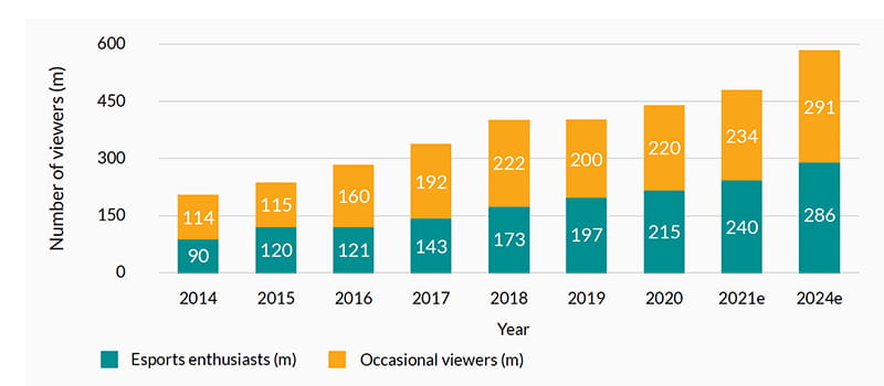 Source: Newzoo Global Esports Market Report 2014-2020, Newzoo Global Esports & Live Stream Market Report 2021