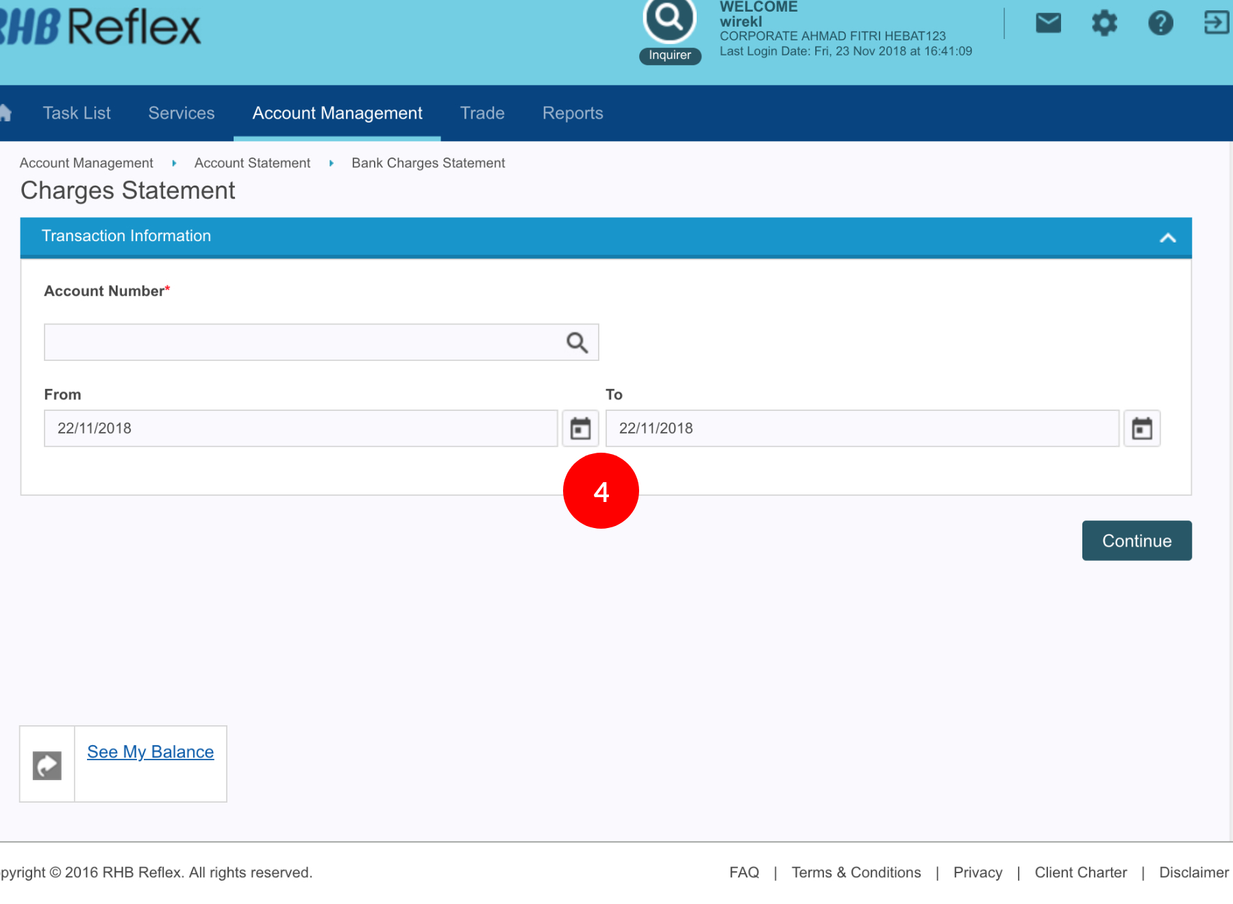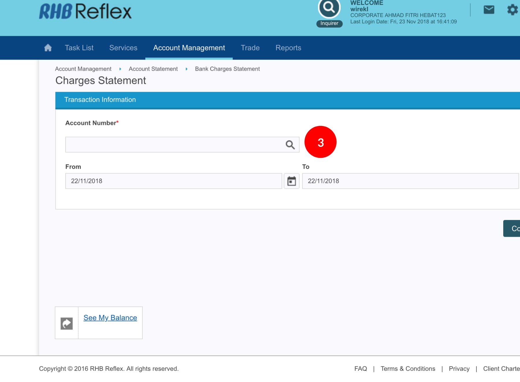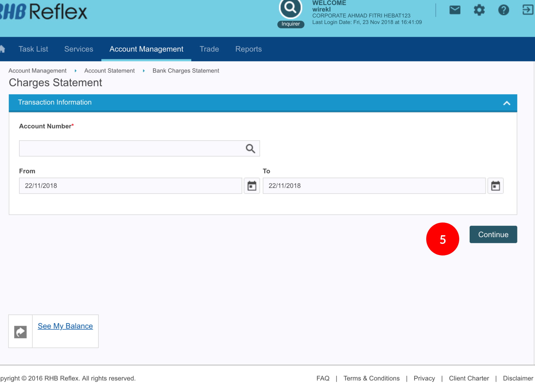 1.Login as User and under “Account Management” tab; select “Account Statement”.