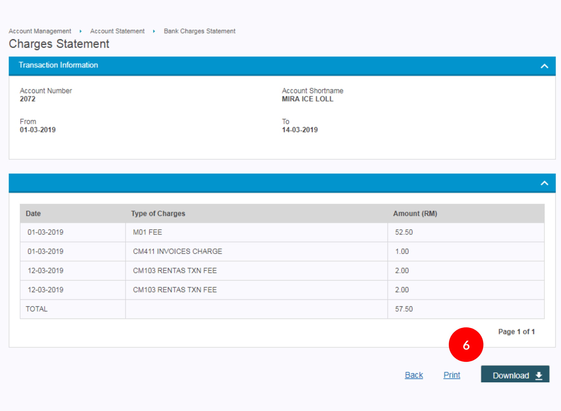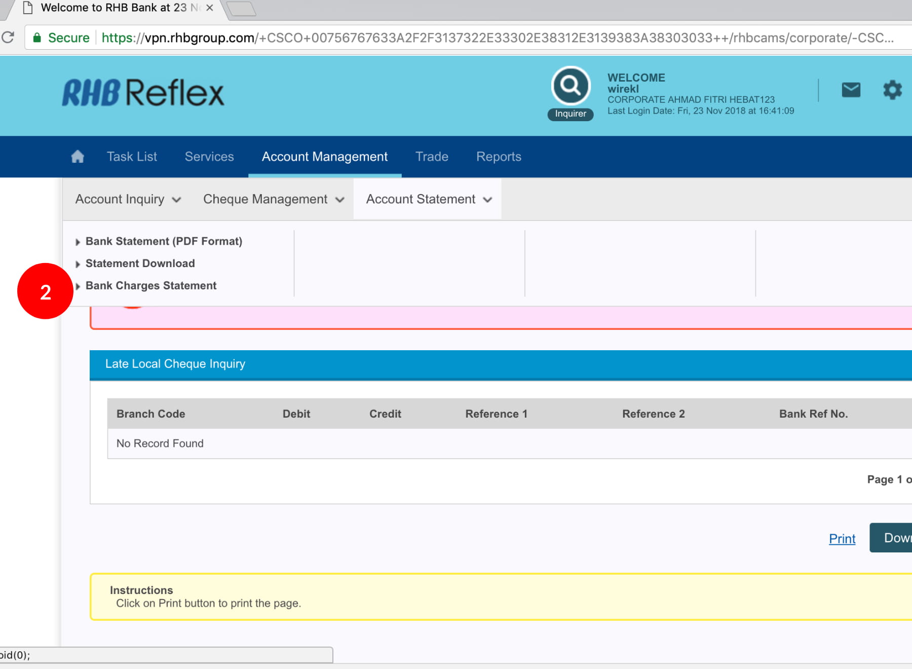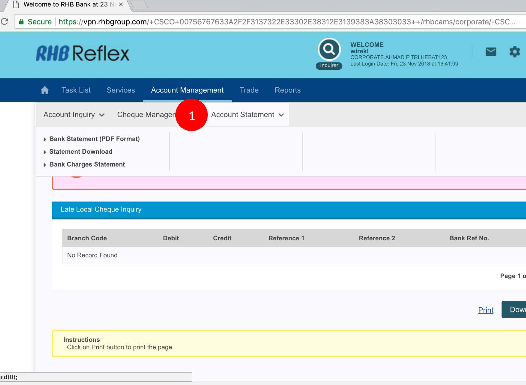 1.Login as User and under “Account Management” tab; select “Account Statement”.