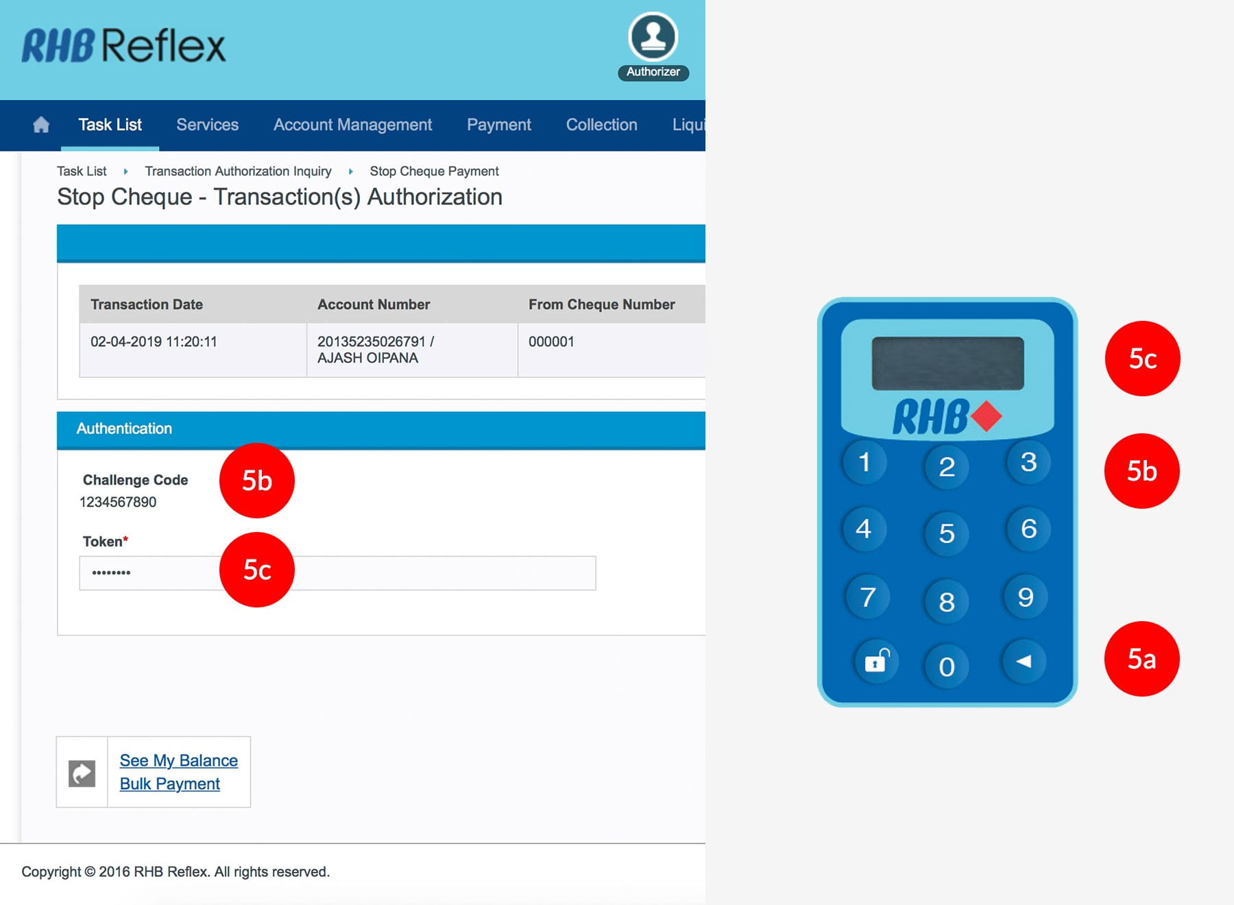 "rHb" will be displayed and press 2.b) Enter the Challenge Code into the Token. c) An 8-digit number will be generated by the Token and key in this number at the Token field. -
