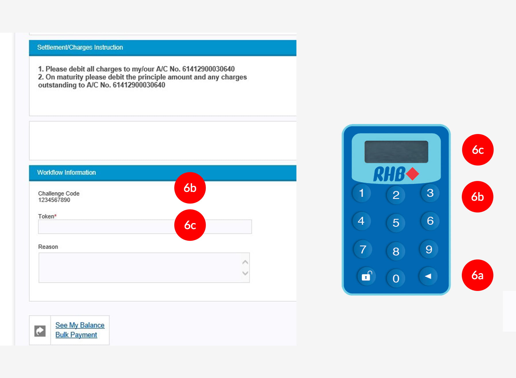 be displayed and then you press 2.b) Enter the Challenge Code into the Token. c) An 8-digit number will be generated by the Token and key in this number at the Token field.