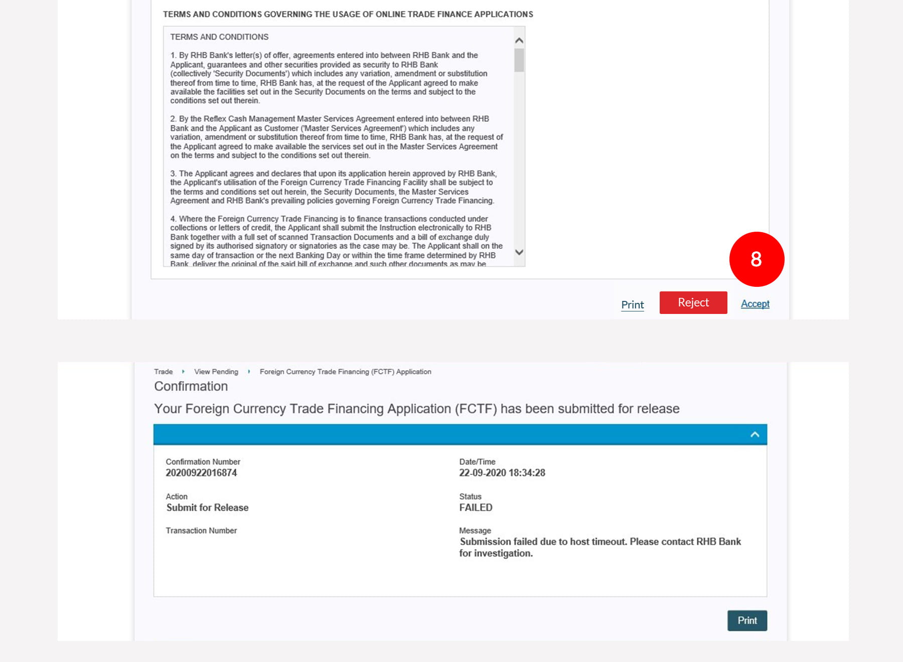 “Successful” status means the transaction has been successfully submitted to the Bank pending processing. The Bank’s reference number is for record purpose only and it does not indicate that the transaction has been processed/accepted by the Bank.