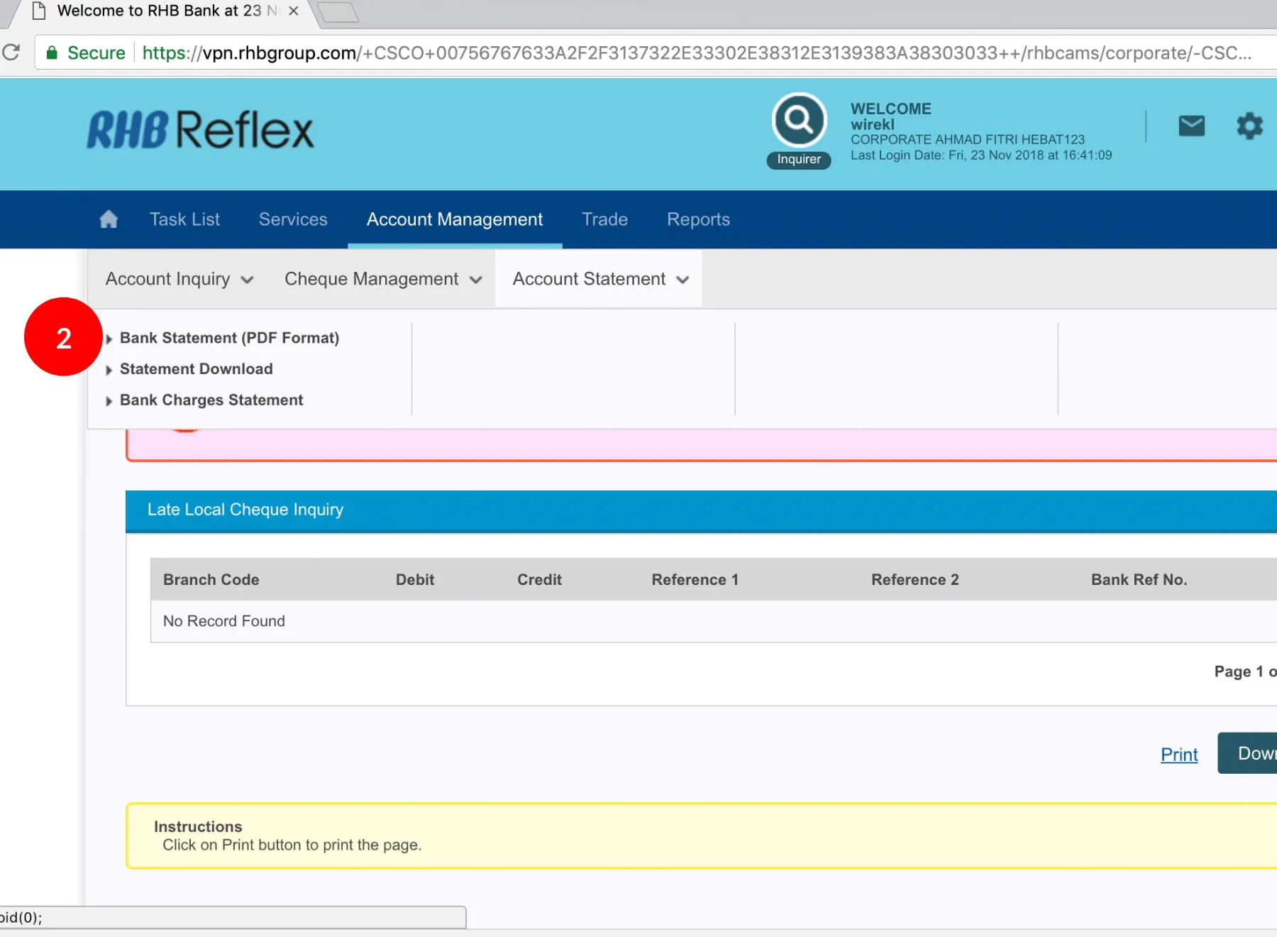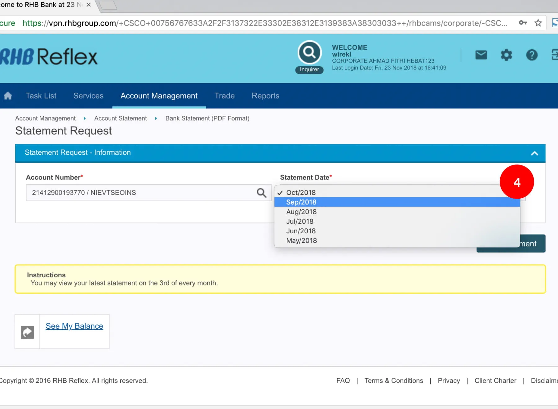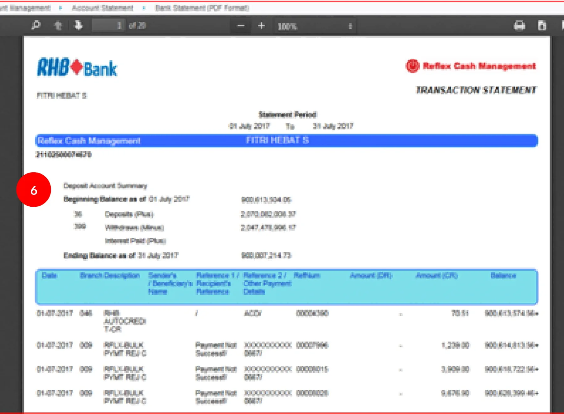 How do I get / download the monthly bank statement up to 6 months in pdf?