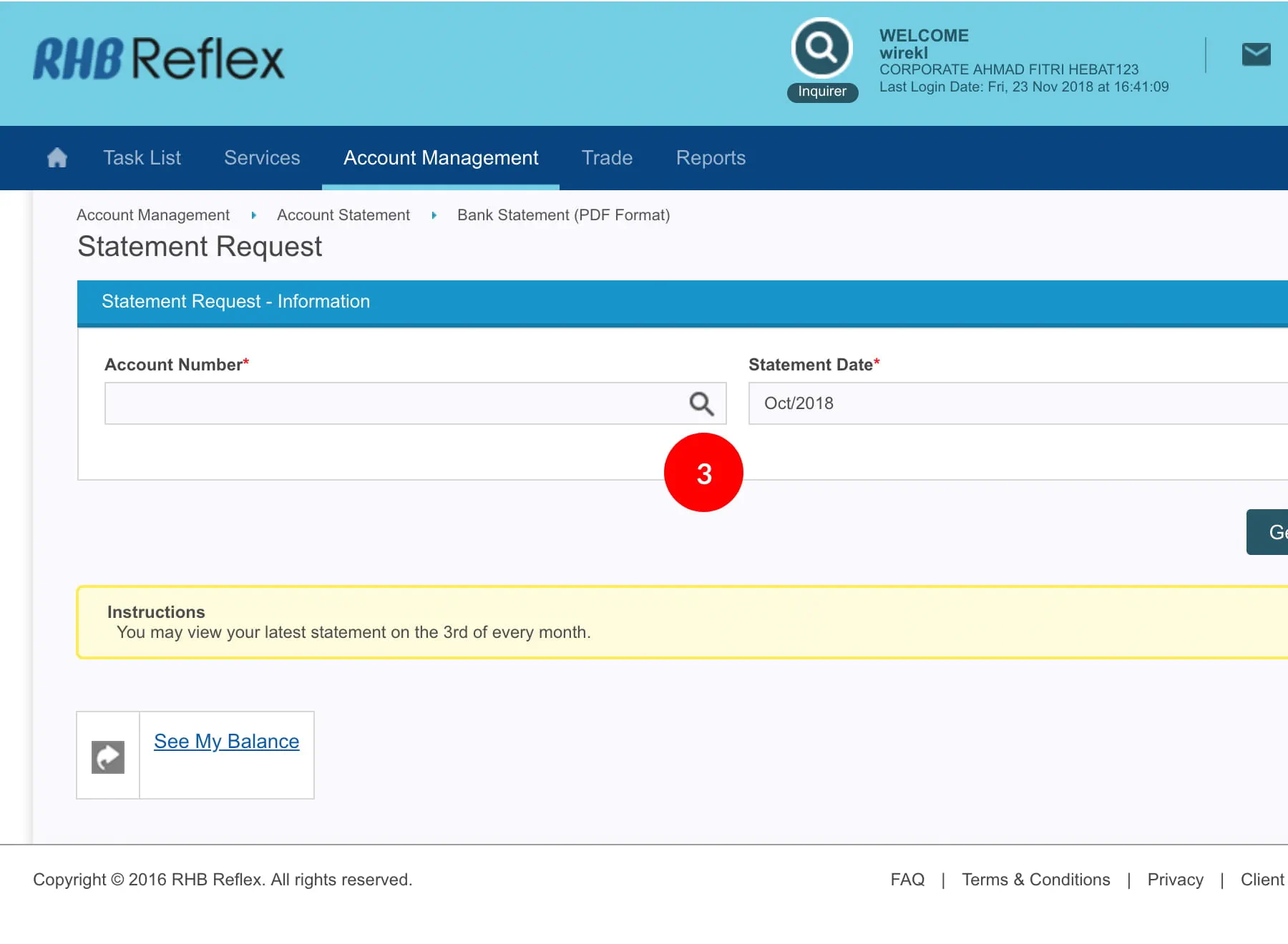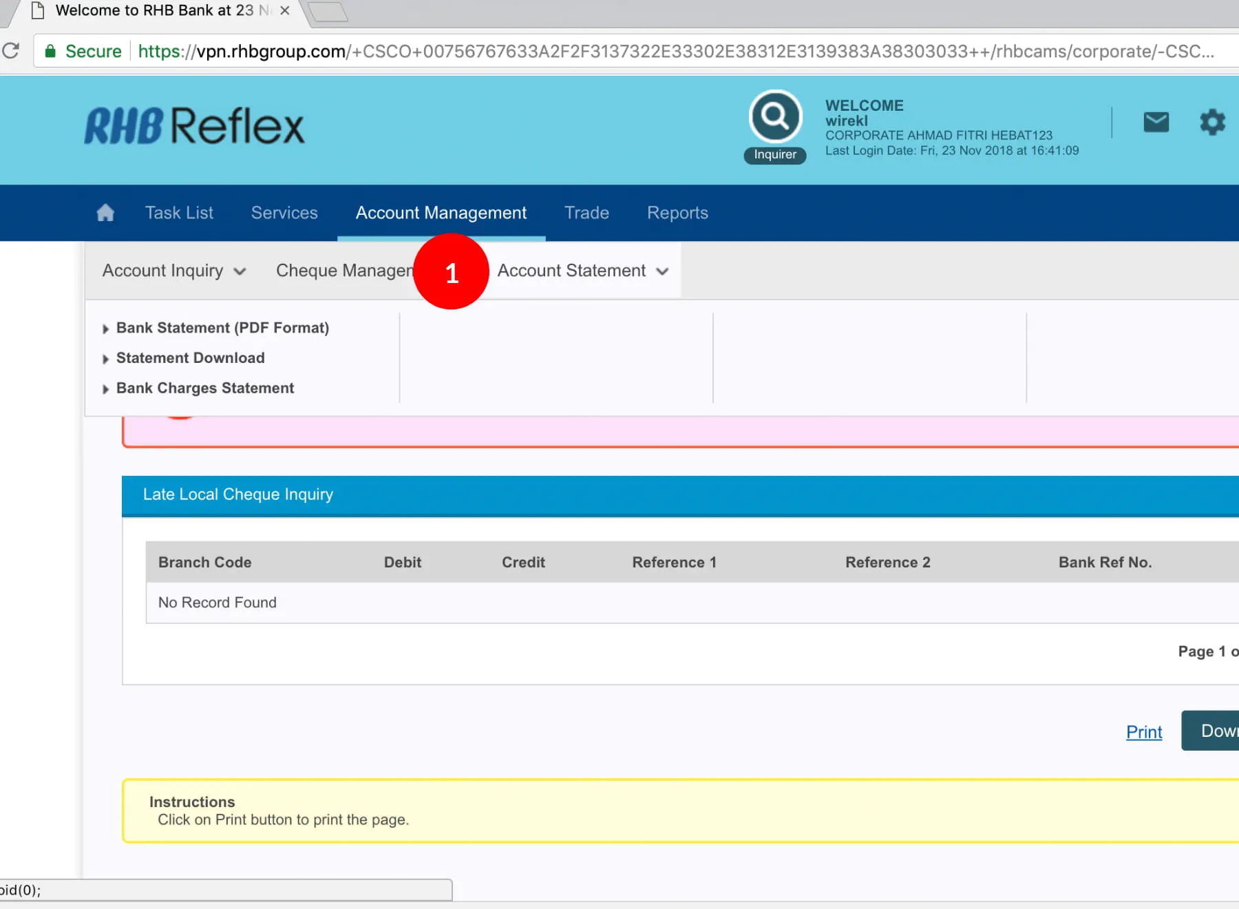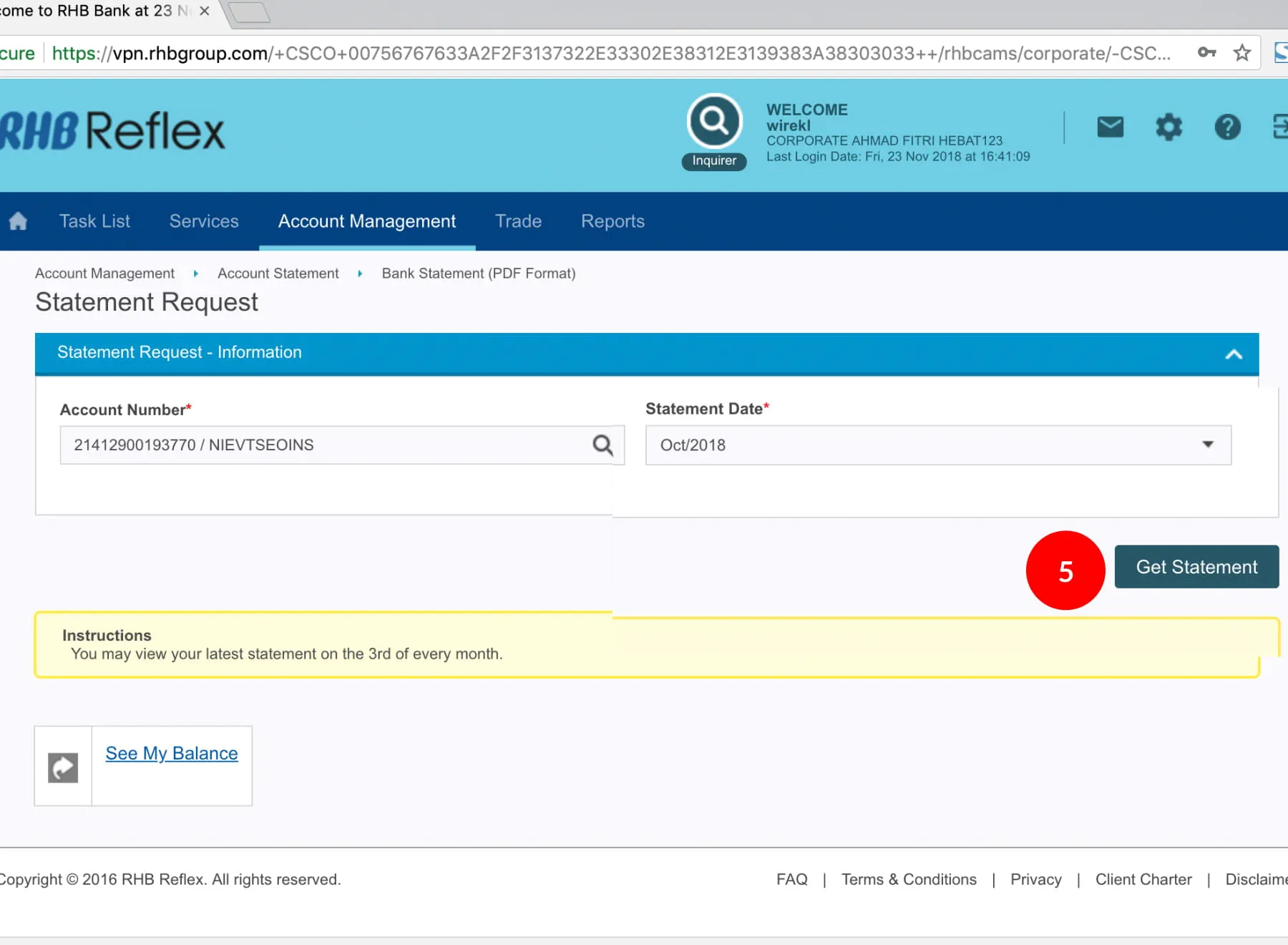 How do I get / download the monthly bank statement up to 6 months in pdf?