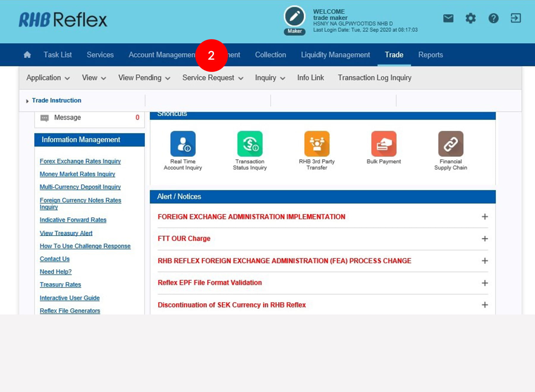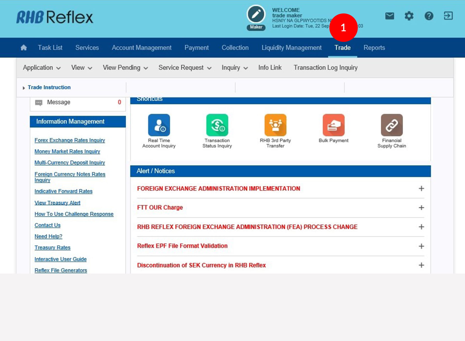 RHB Trade Module in REFLEX allows Corporate Users to communicate with the