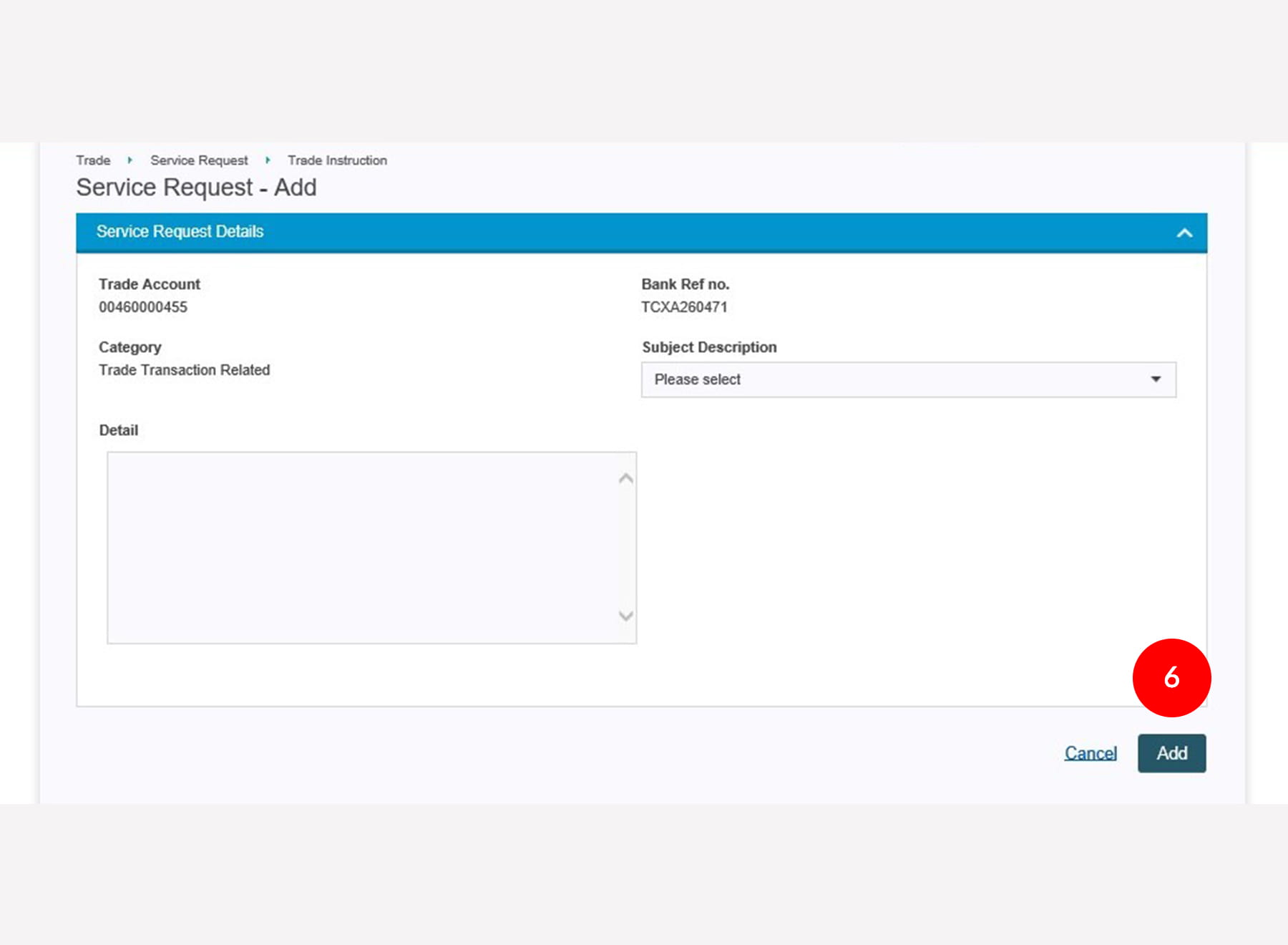 3.Then click on the Trade Instruction, and the Service Request - Add page appears.