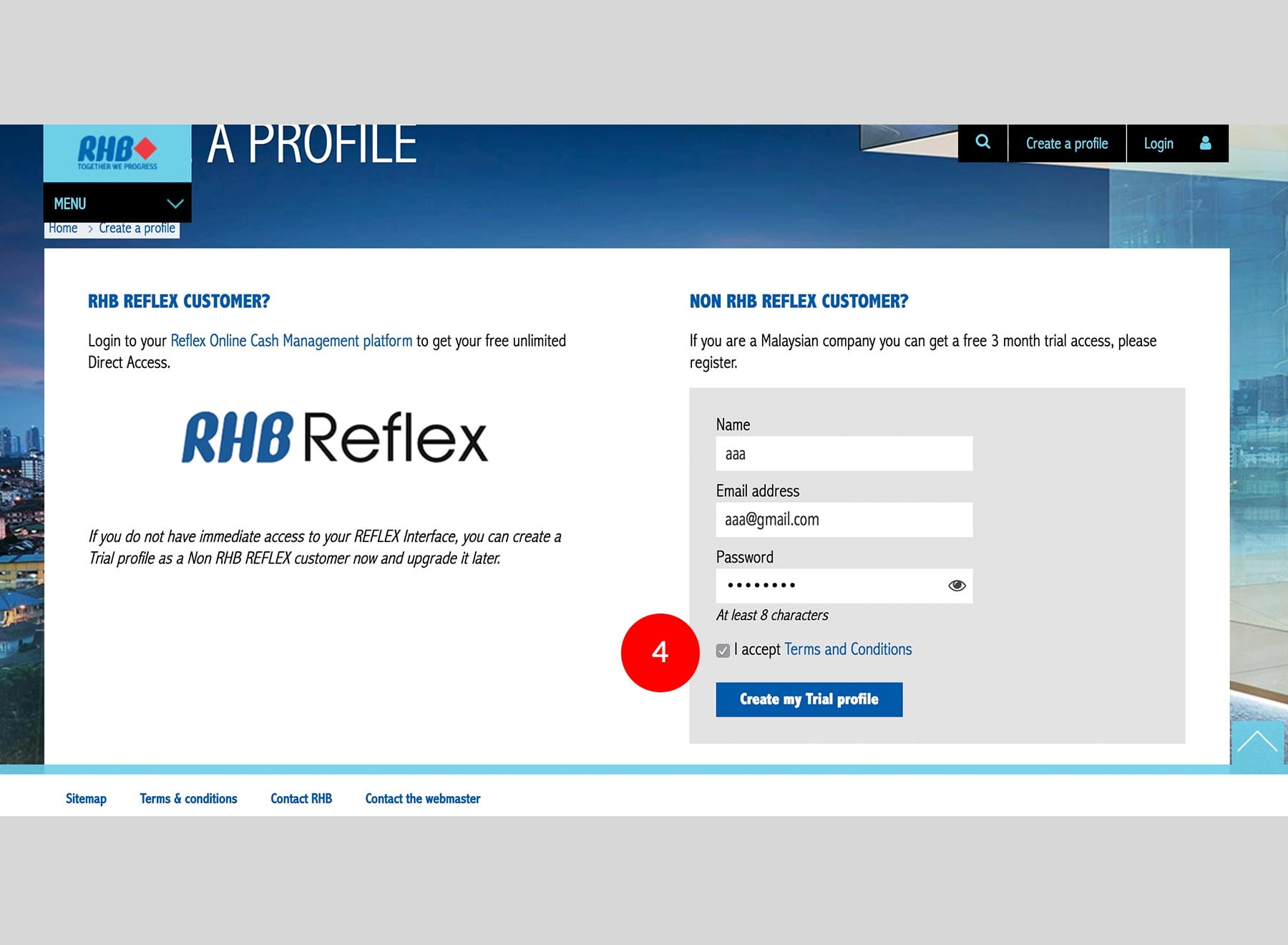 5.Click “Create my Trial profile” to proceed