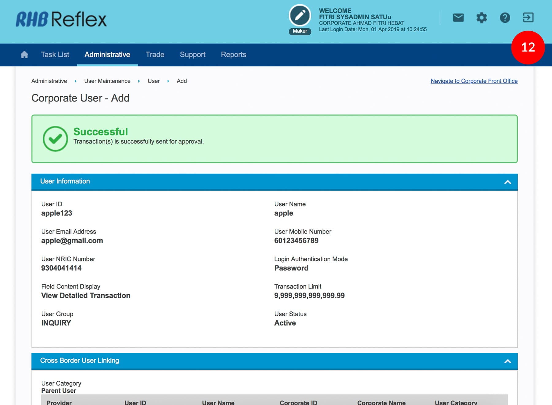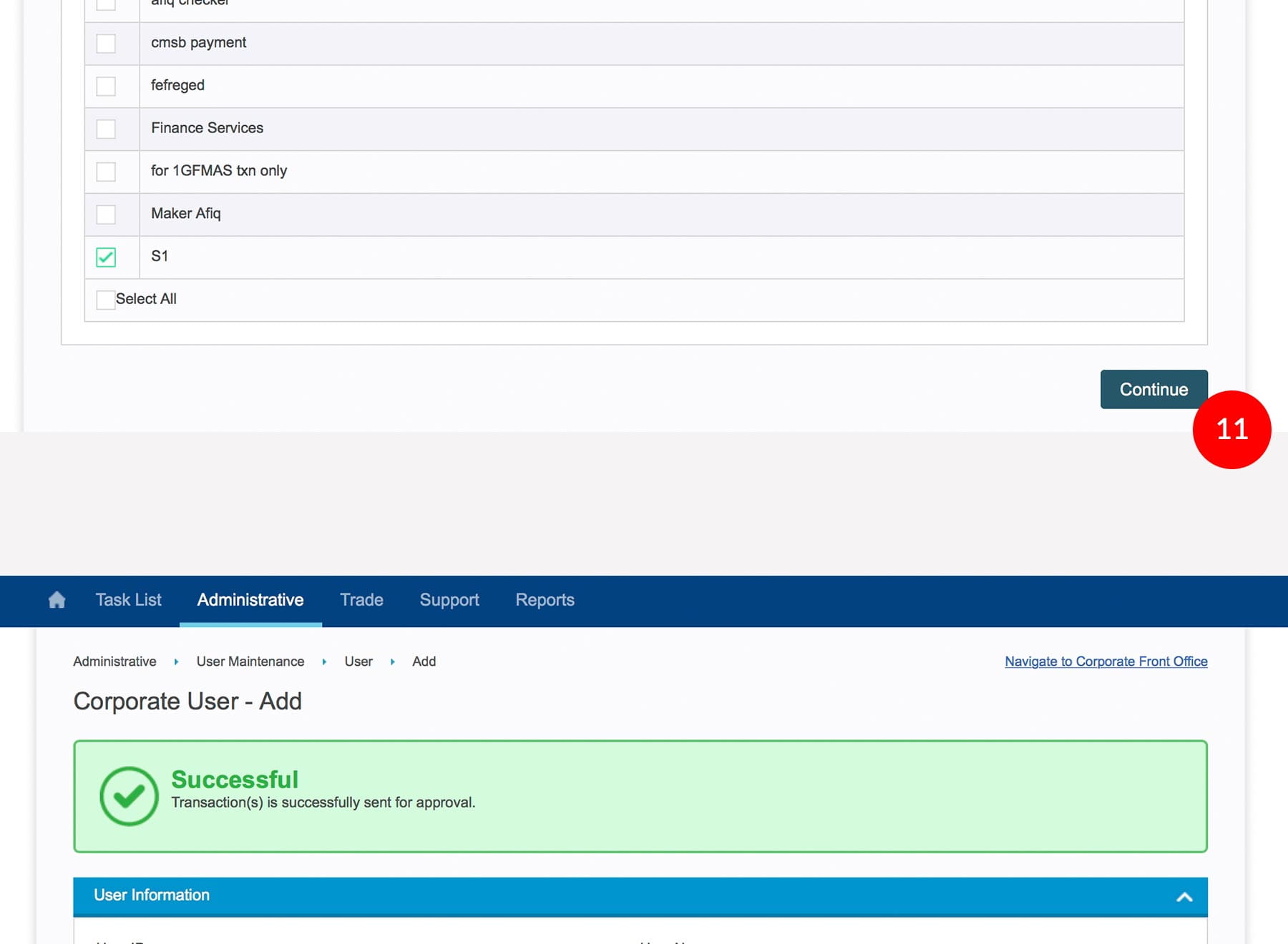message of “Transaction(s) is successfully sent for approval” will be displayed. This