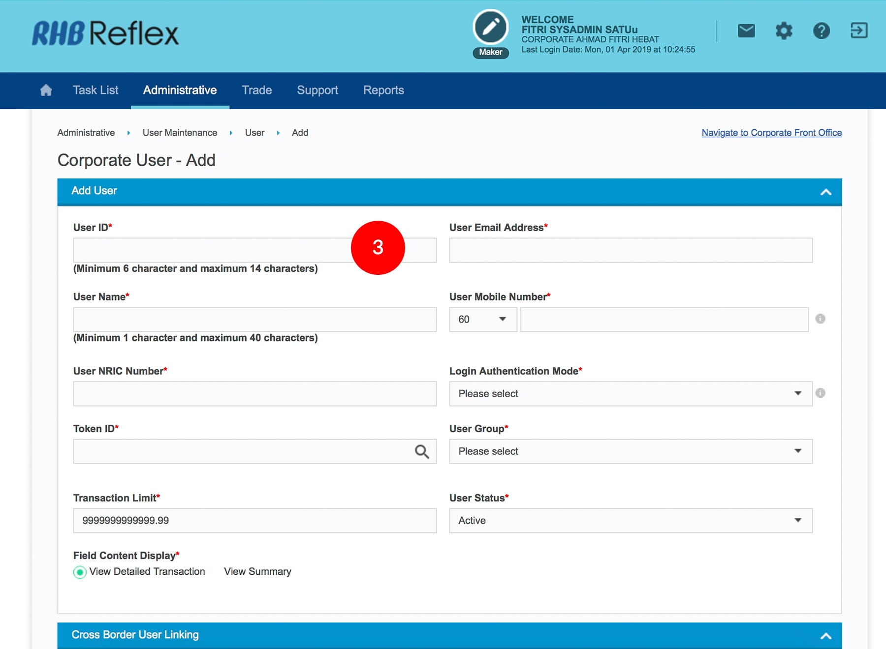 3.Type in preferred User ID - minimum 6 characters and maximum 14 characters (Can be Alphanumeric/Alphabets/Numeric) e.g.: USER01 / USER02.