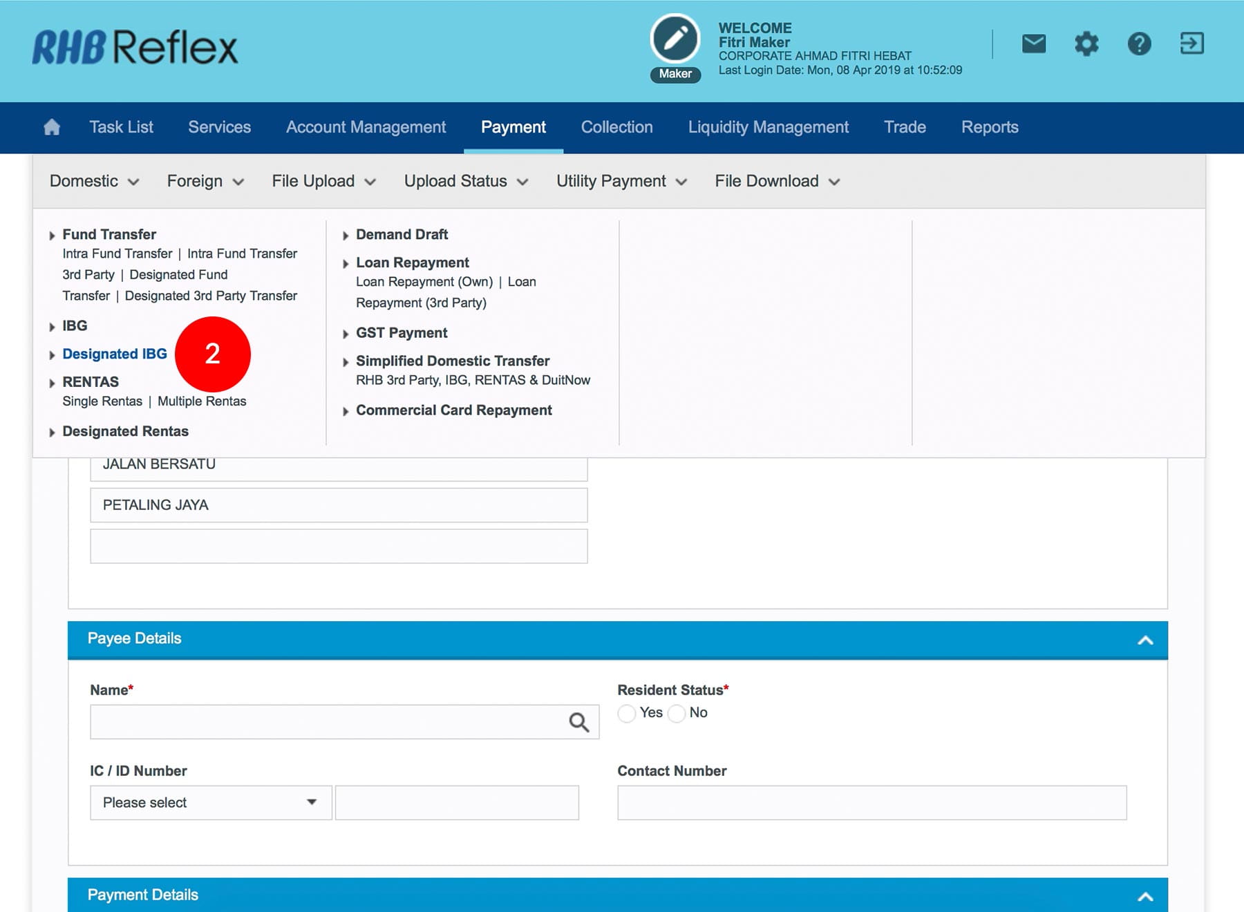 How do I perform designated IBG / GIRO (non-RHB account)? / How do I perform IBG/GIRO restricted to the list of beneficiary created in Beneficiary Maintenance?