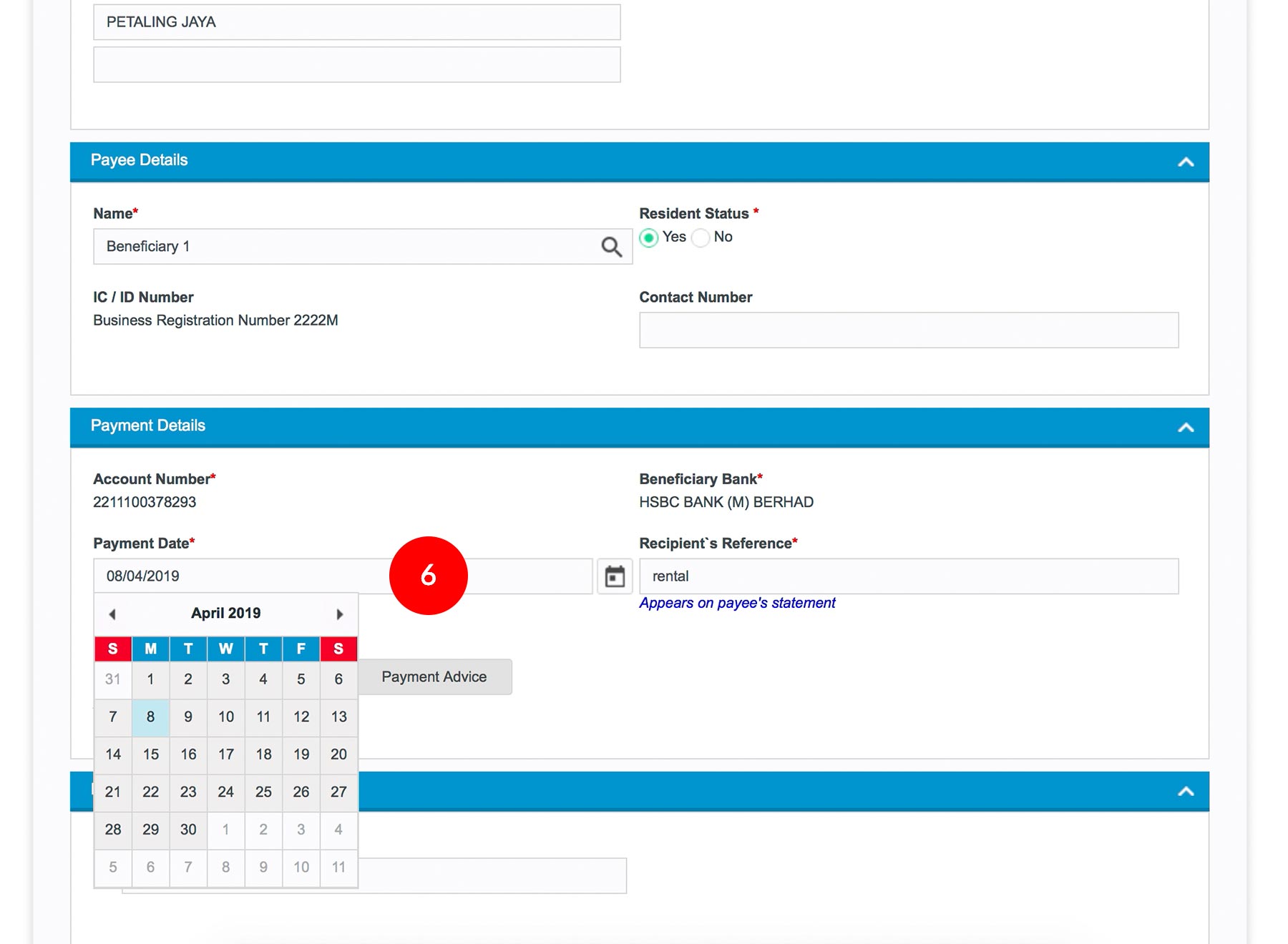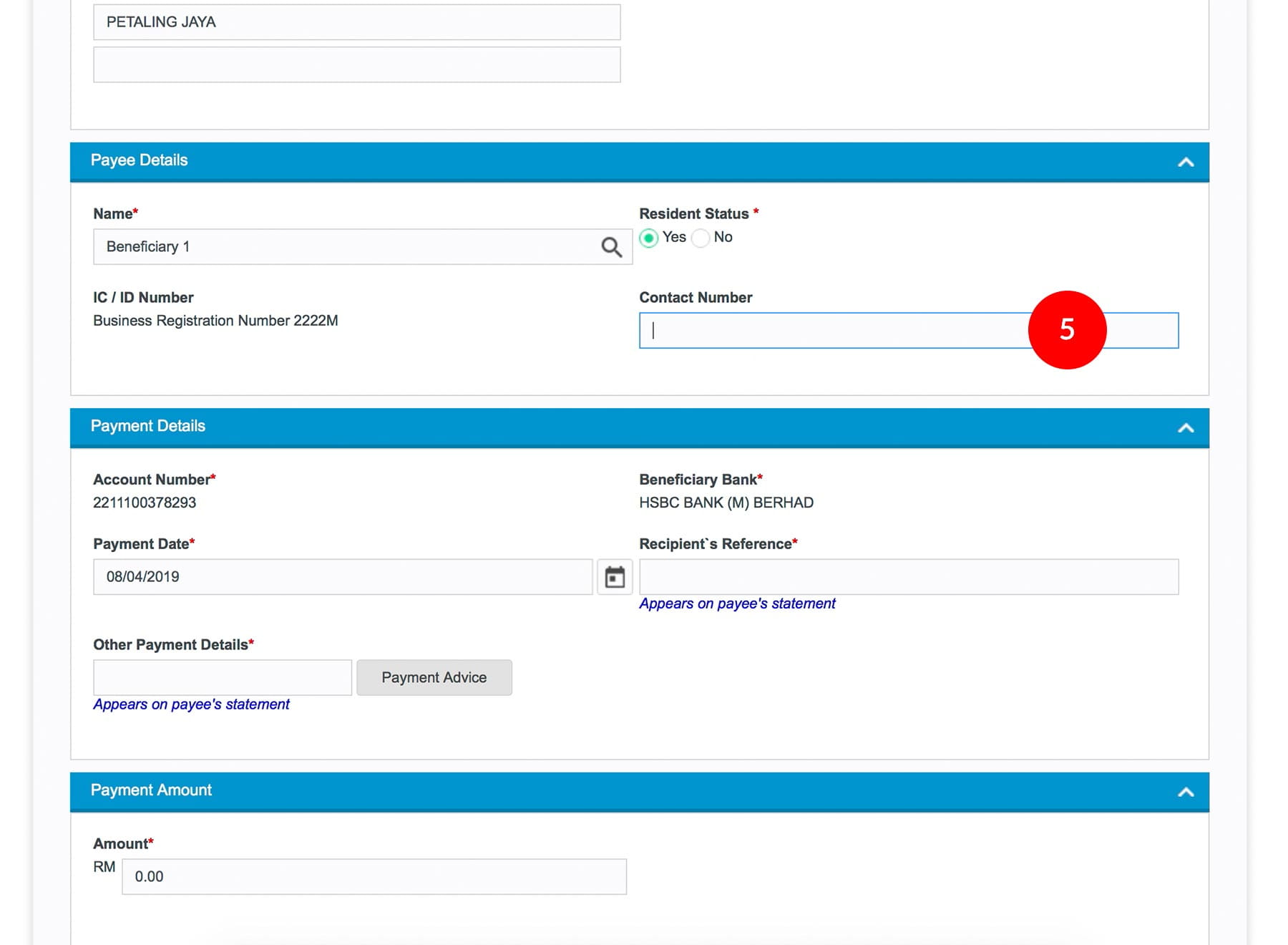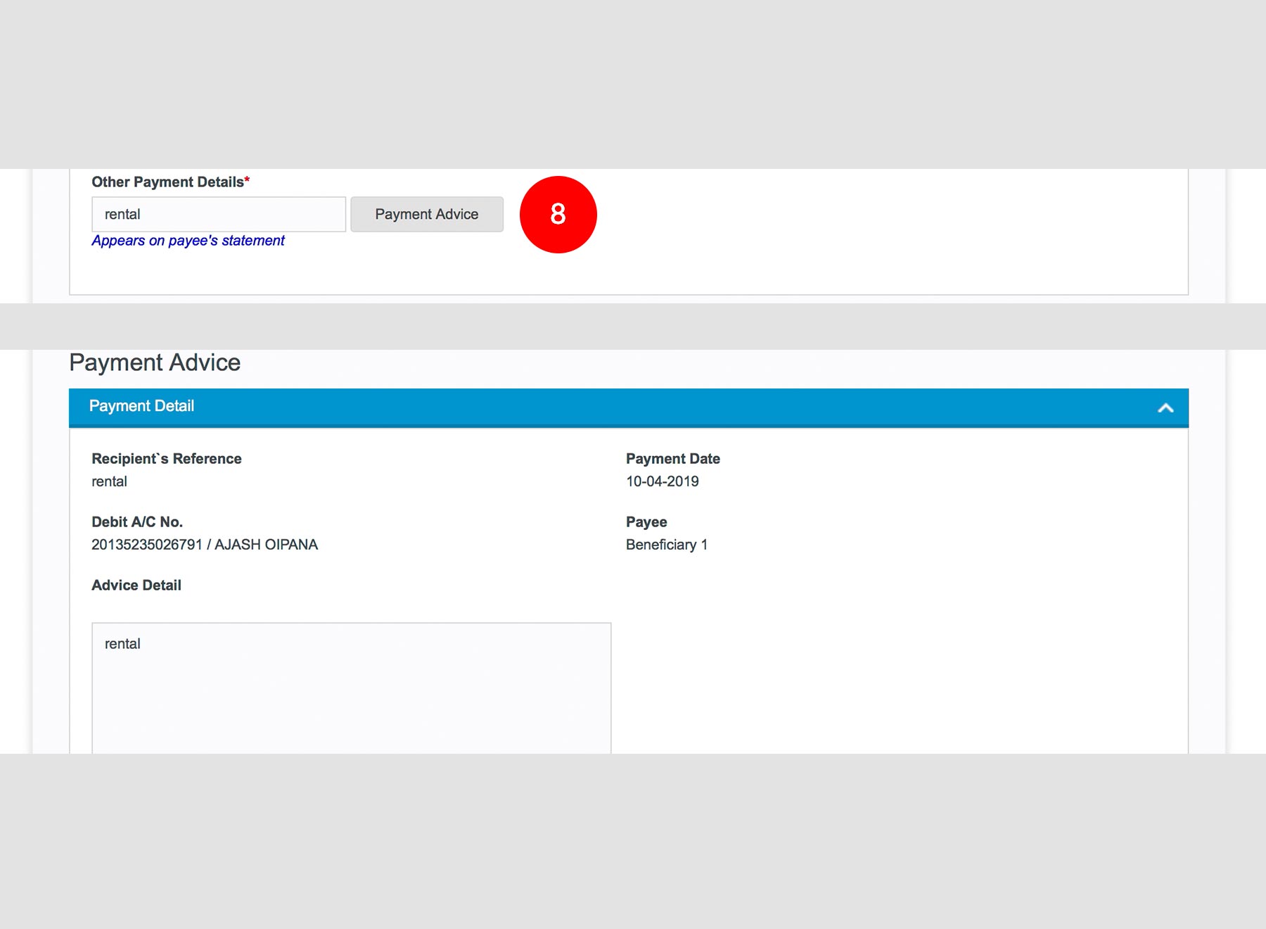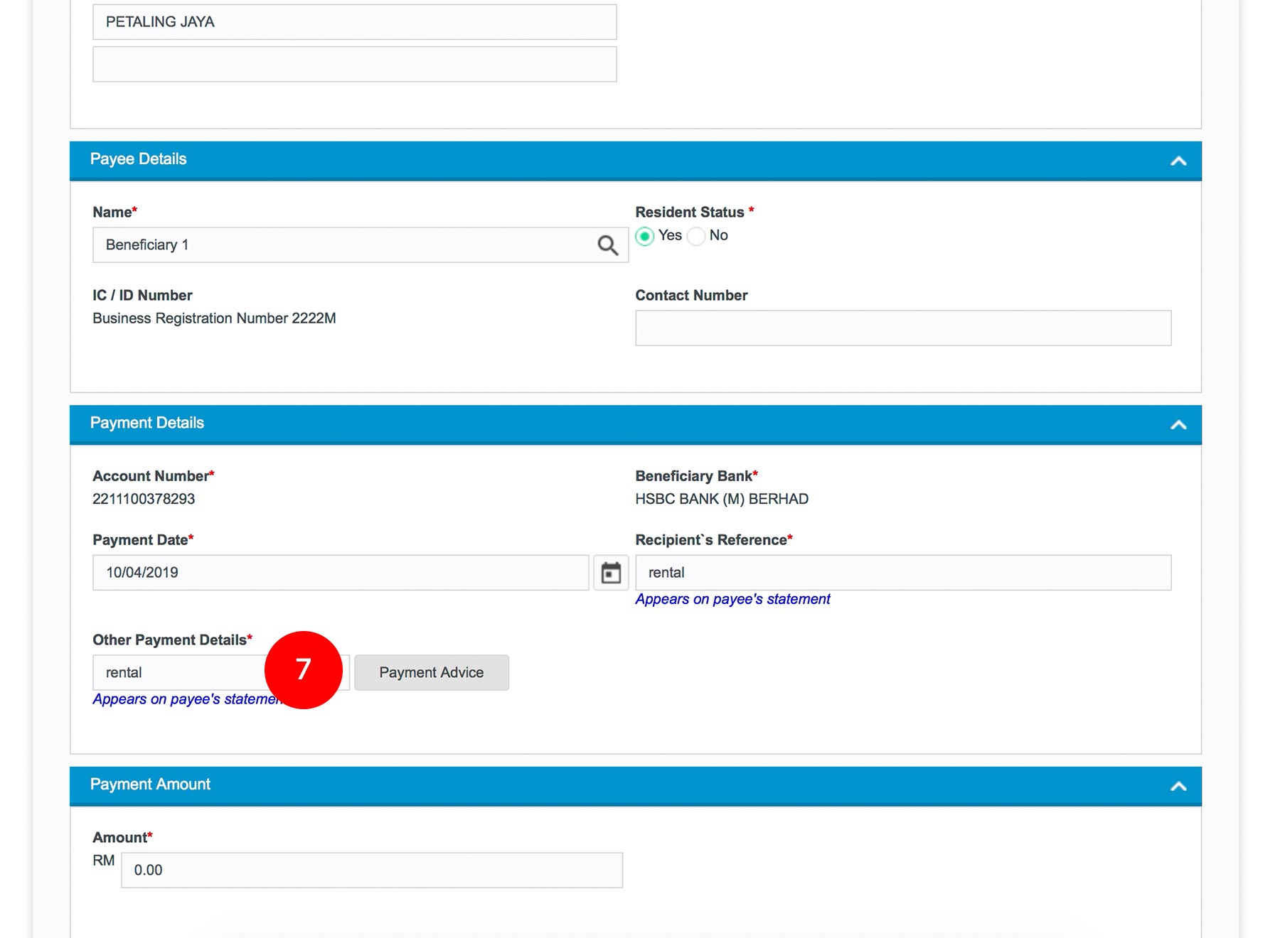 7.Key in Recipient Reference (Mandatory) and Other Payments Details (Optional).