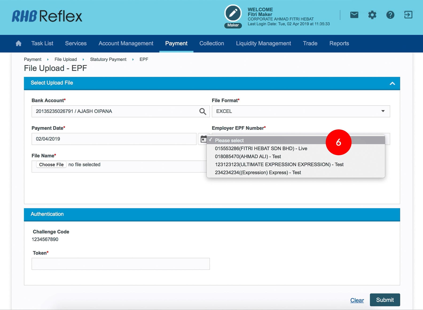 6.Select the Employer EPF Account Number.