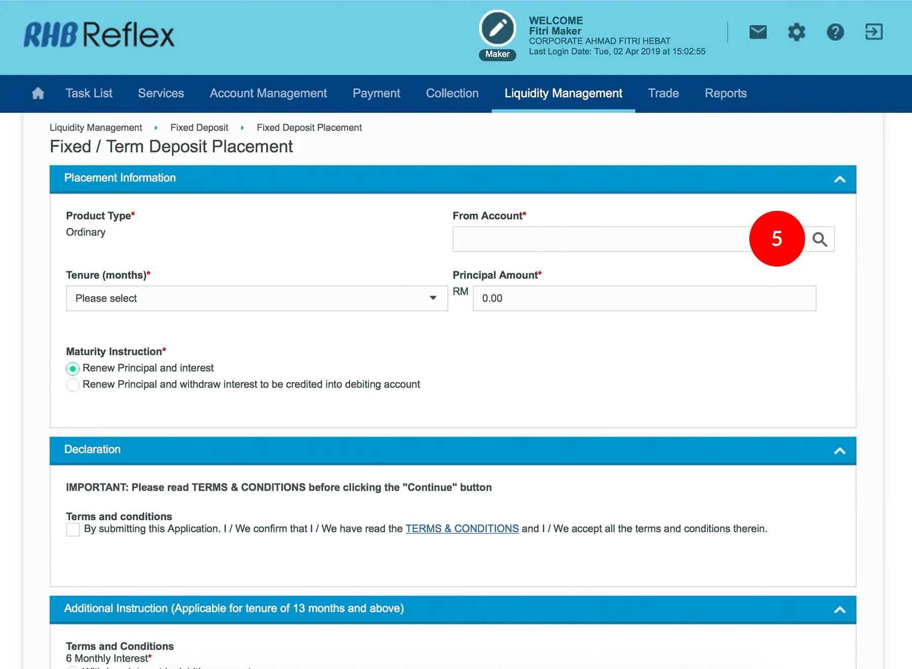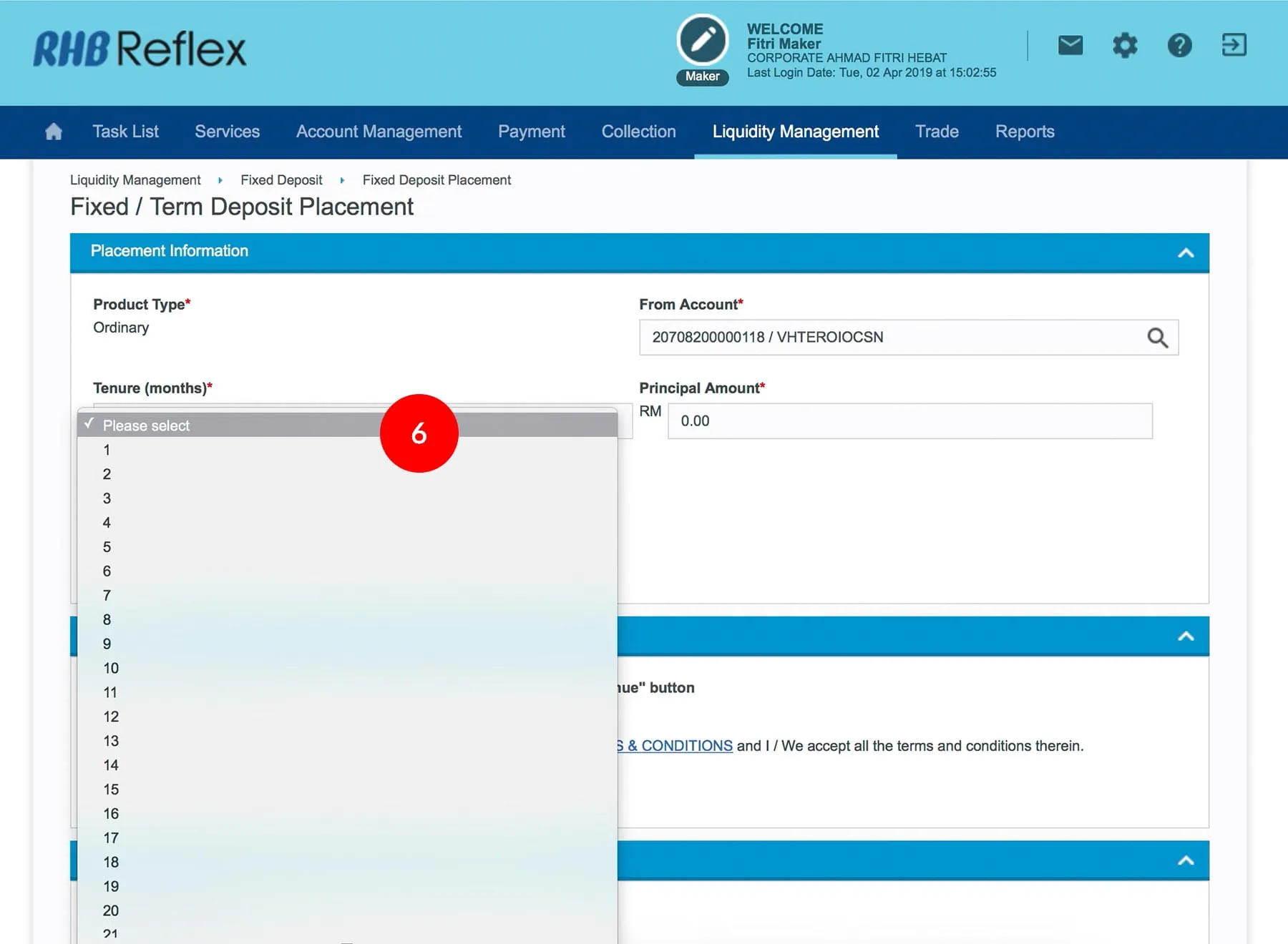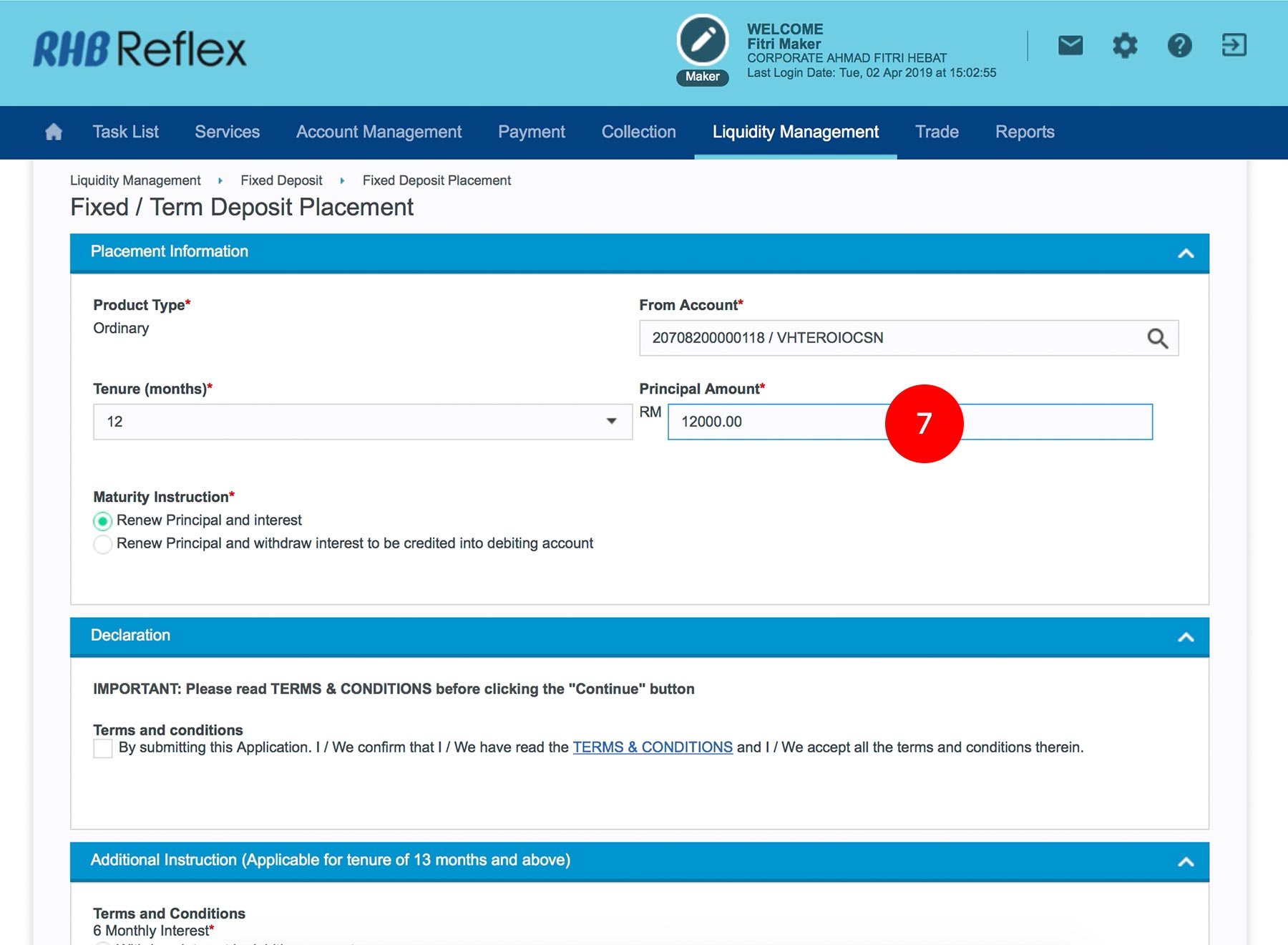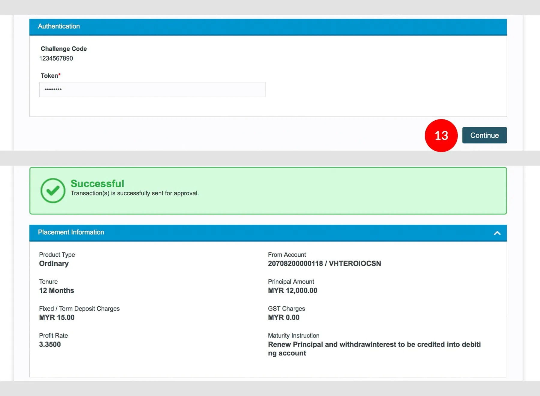 10.Select the Choice of Instruction for placement Fixed Deposit 13 months and above.