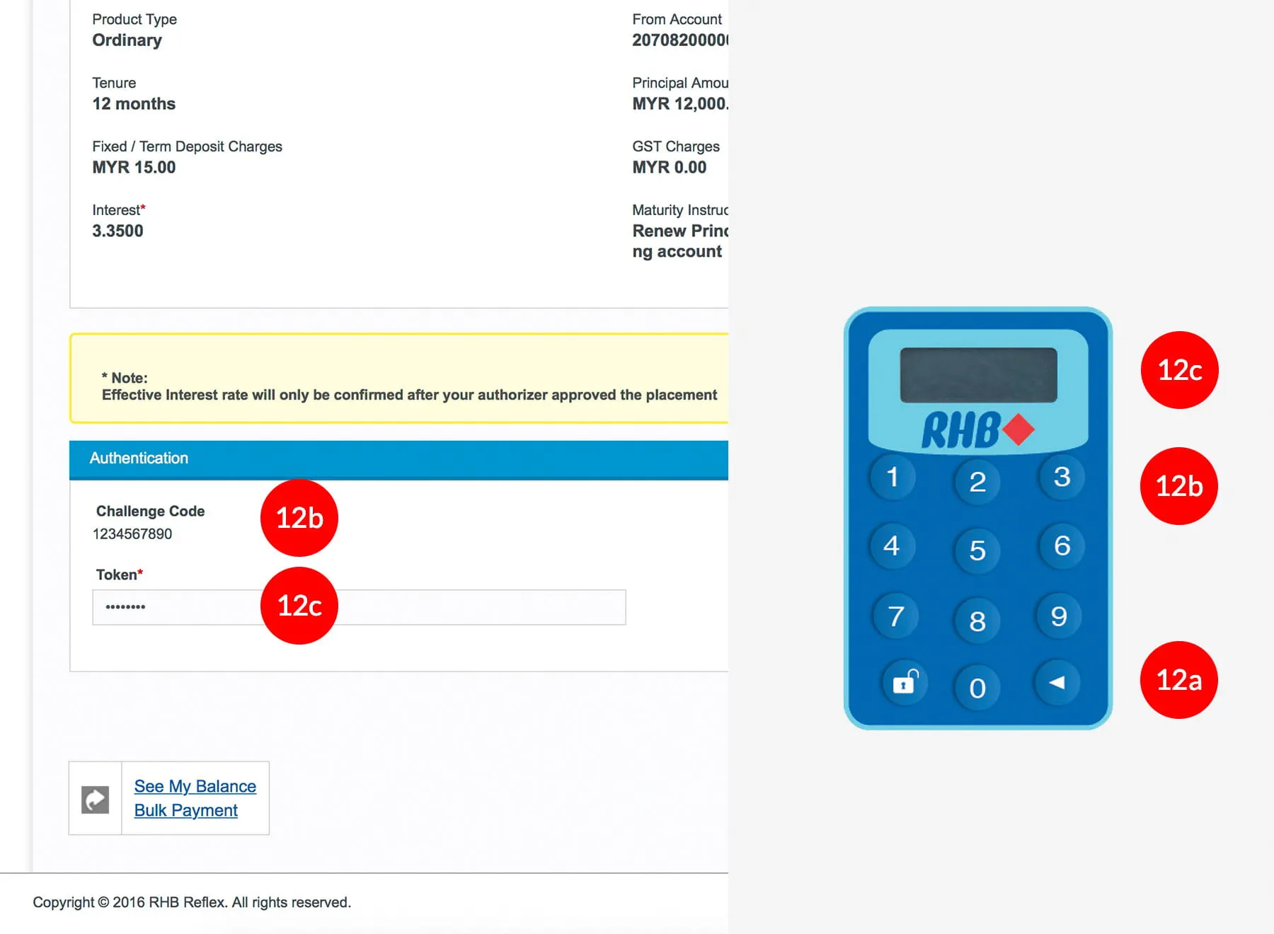 b) The token screen will show APPLI, then Press 2. Enter the 5 digits Challenge Code that appear on the screen into Authorizer’s token. c) The Token will then generate 8 digits Passcode on TOKEN LCD screen. Enter this 8 digits Passcode into the Token field box.