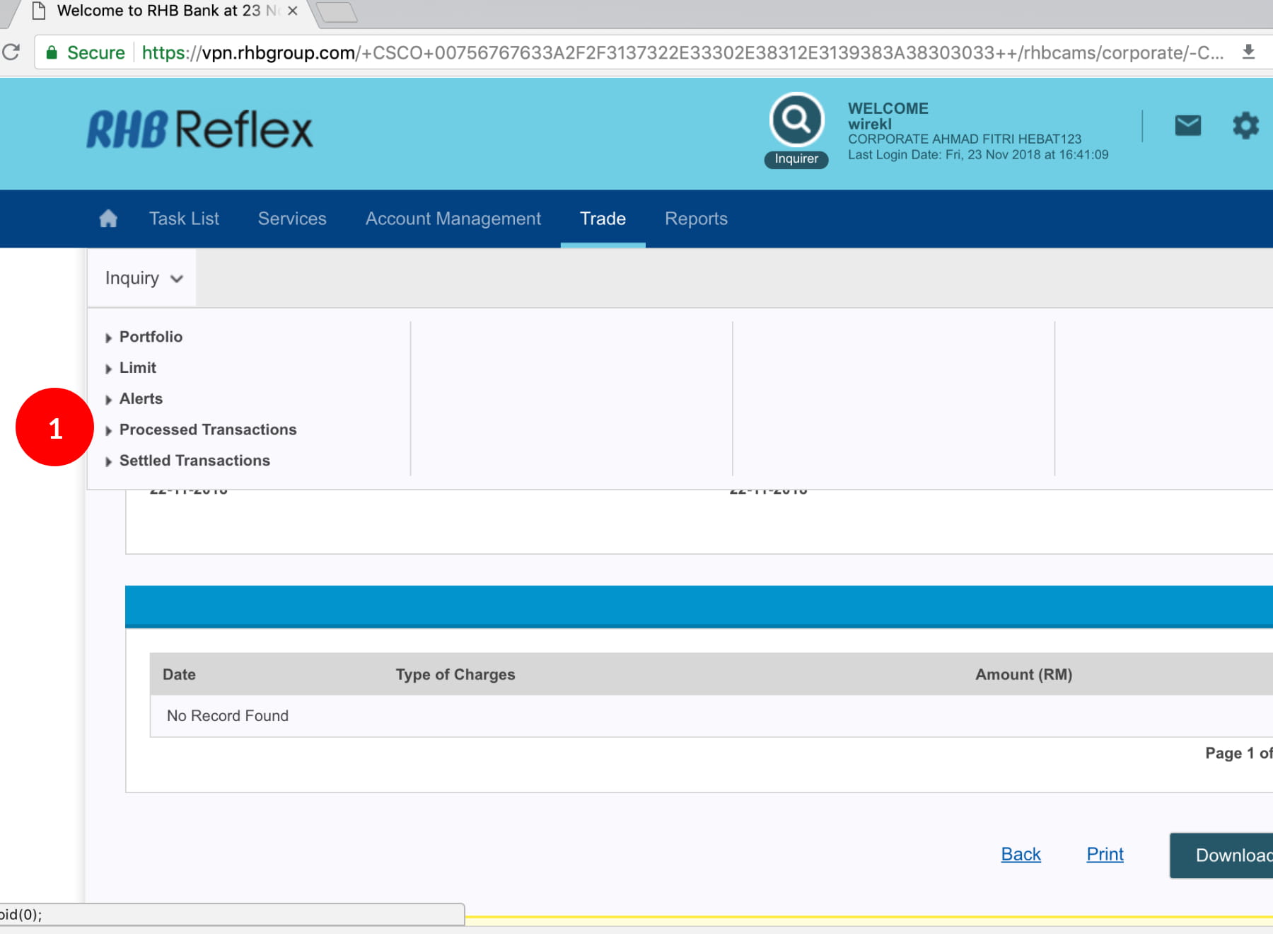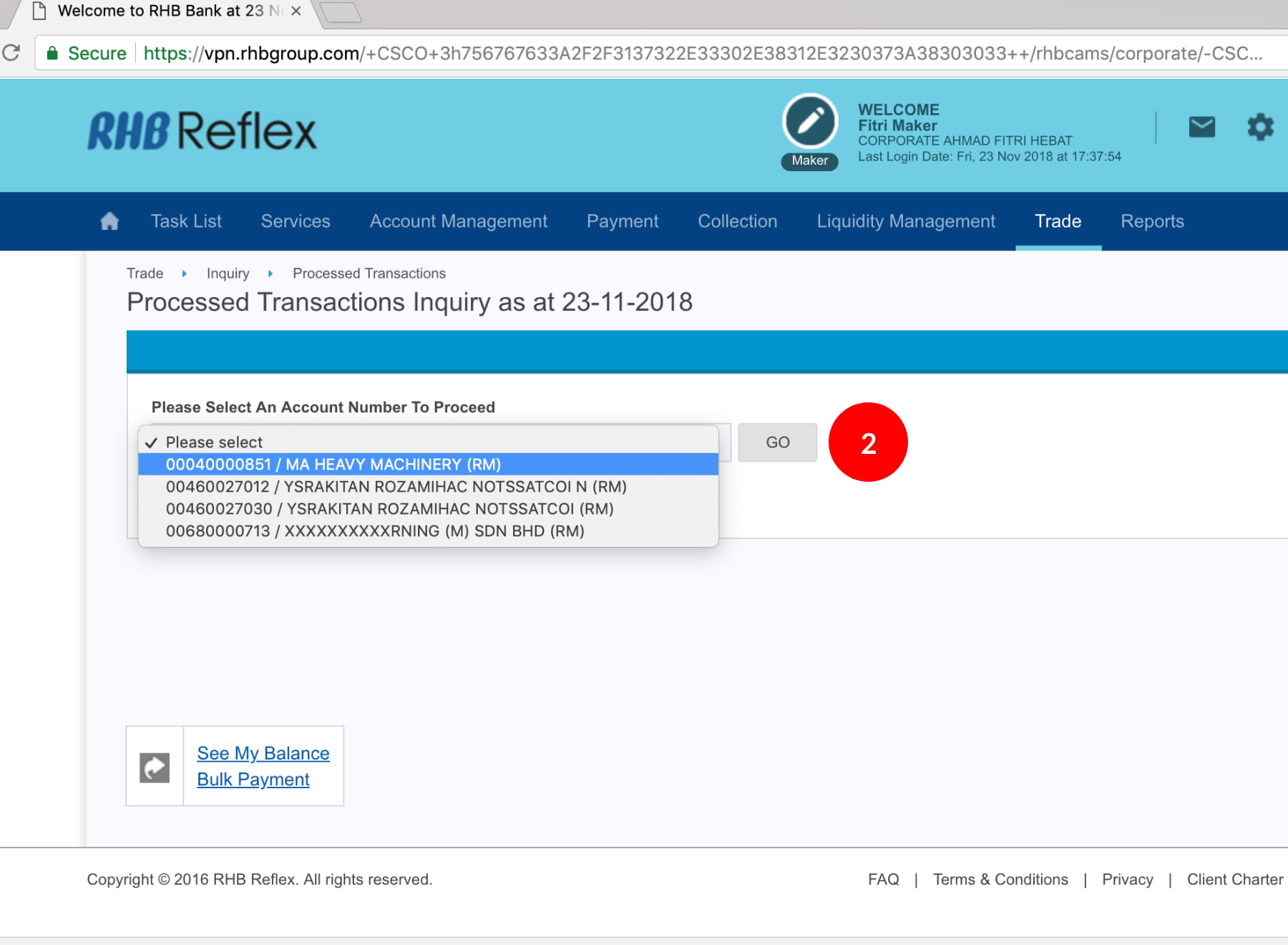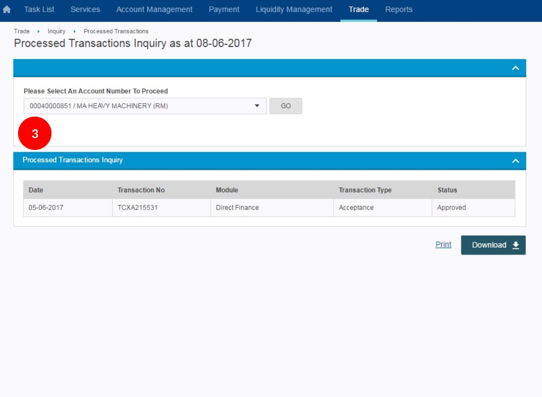 “Inquiry” and click “Processed Transactions”.
