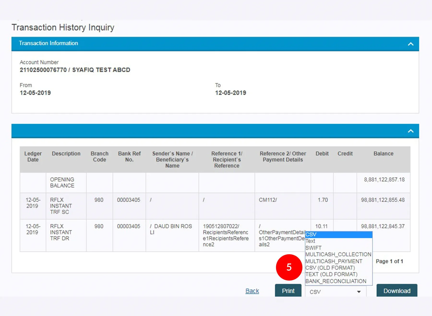 How do I check the transaction history up to 3 months? How do I check previous day / month bank statement? How do I check bank statement up to 3 months? How do I download the bank statement in csv or text?
