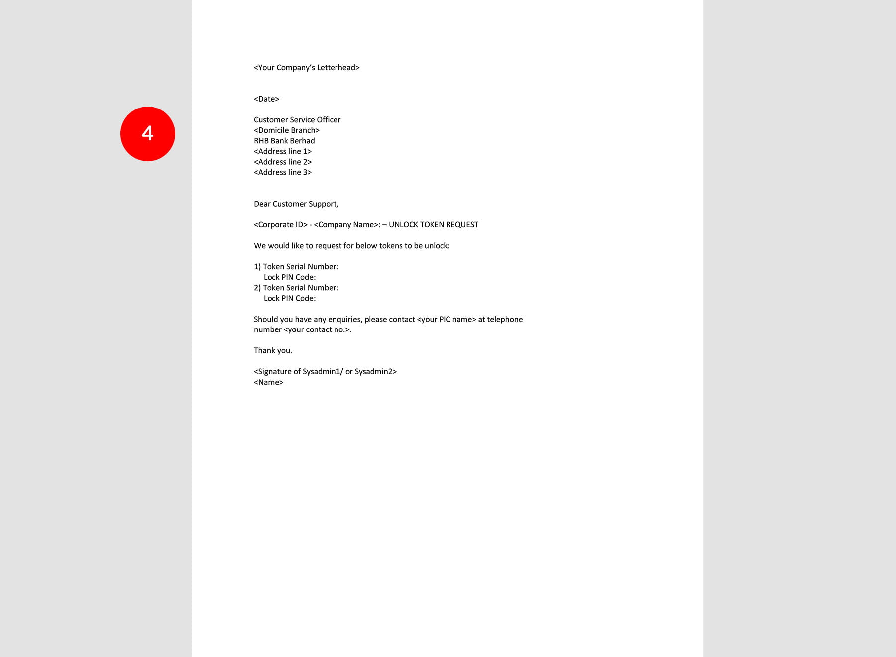 4.Prepare a letter on your company letterhead to request for the token to be unlocked with below content: