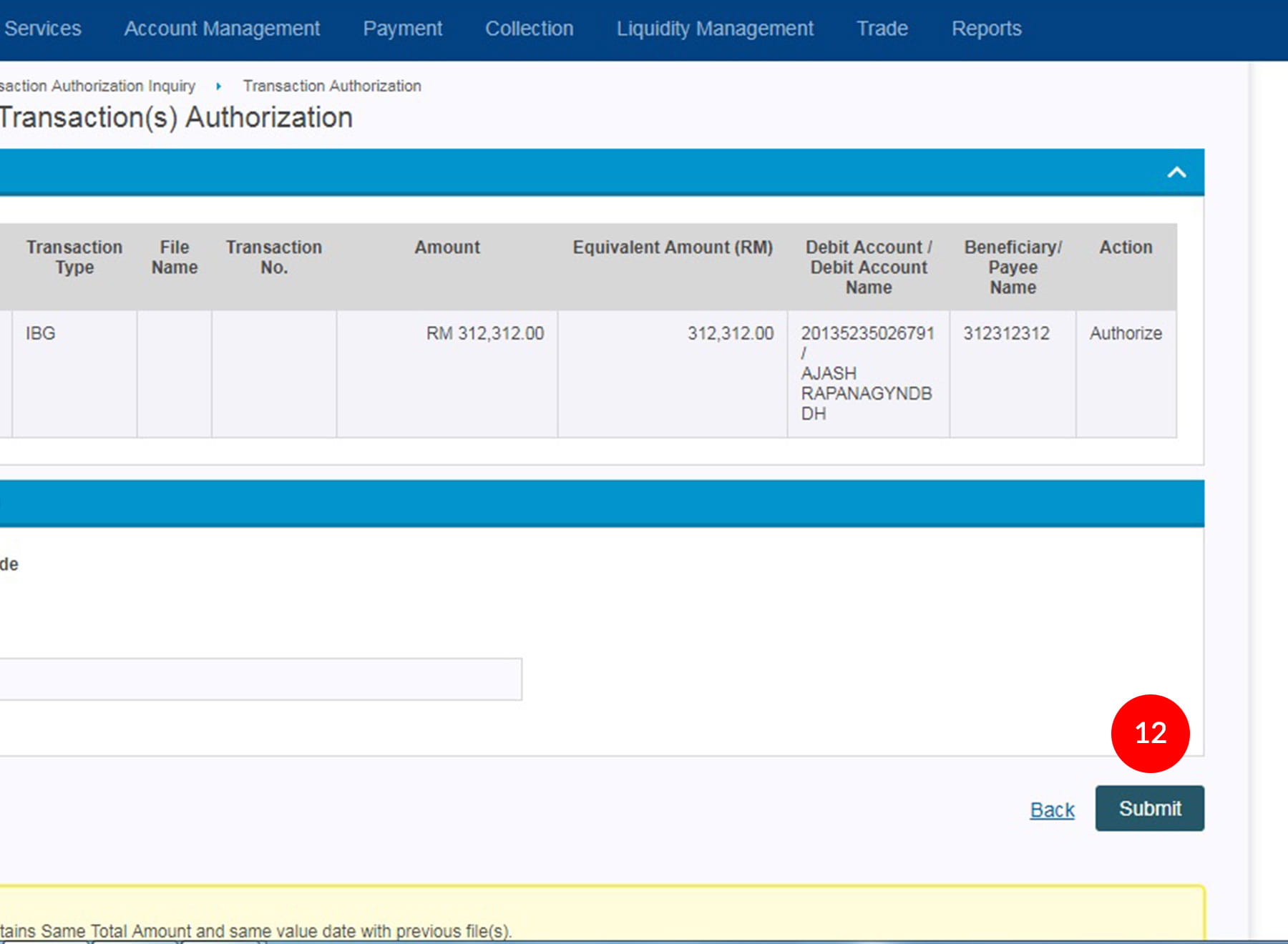 2.Click "Transaction Authorization".