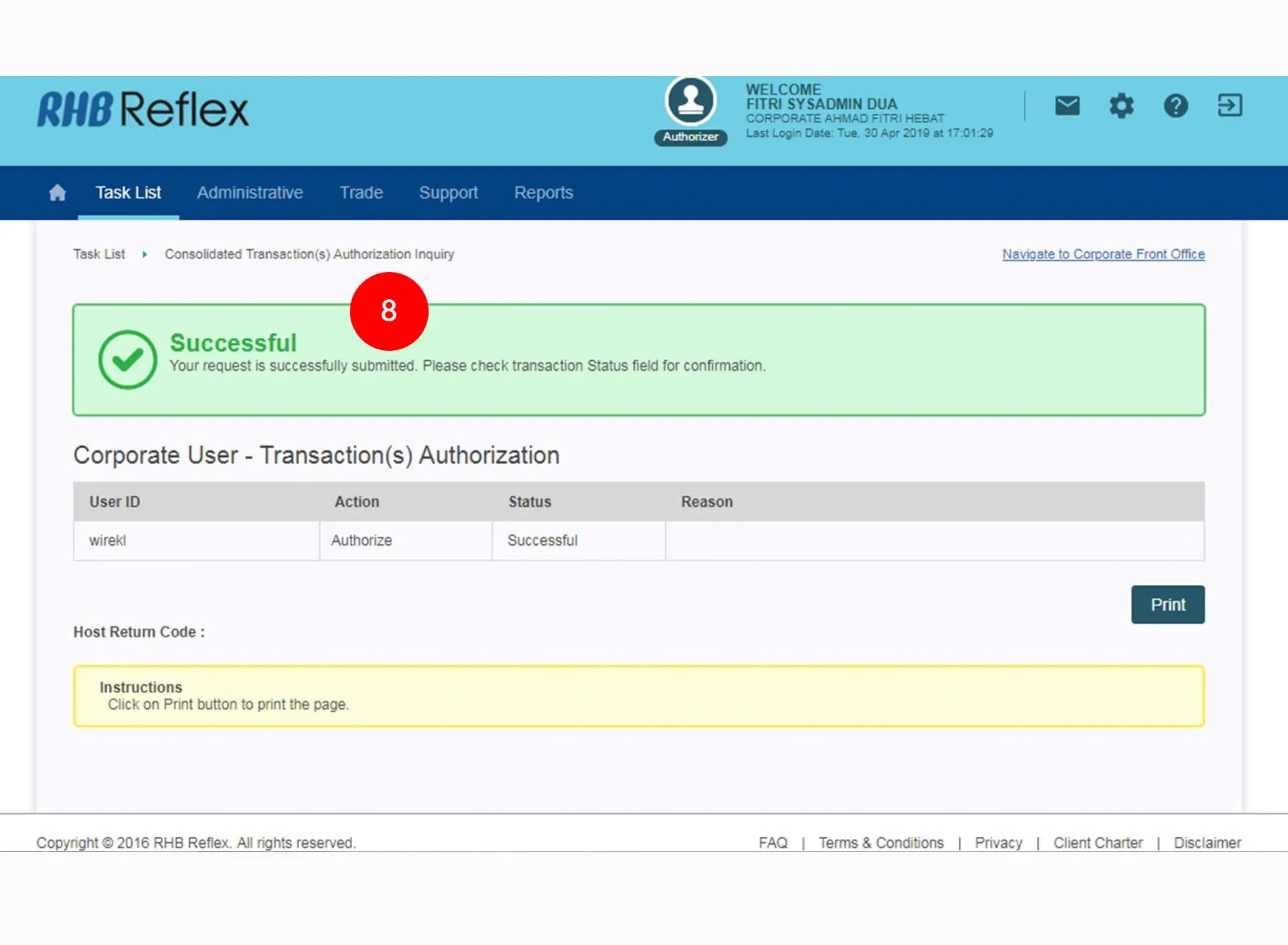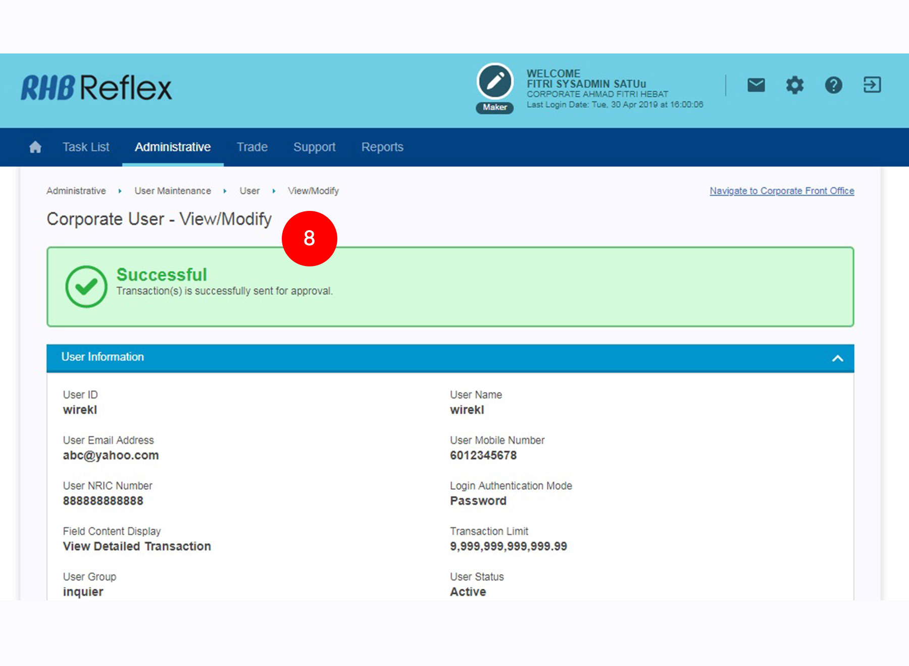 8.A message of “Transaction(s) is successfully sent for approval.” will be displayed. This indicates that the maintenance has been sent to Sysadmin2 for approval.