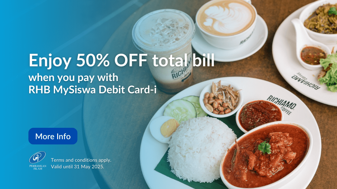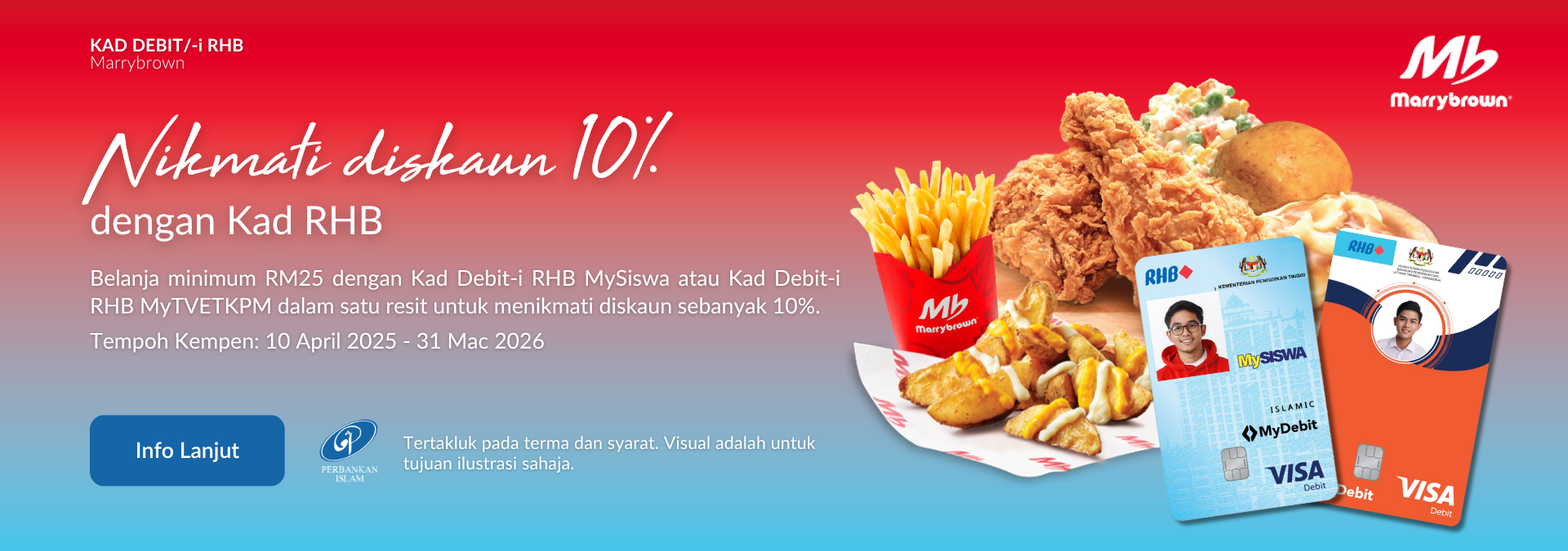 • Withdraw cash when you need it with ZERO charges at RHB’s ATM network.