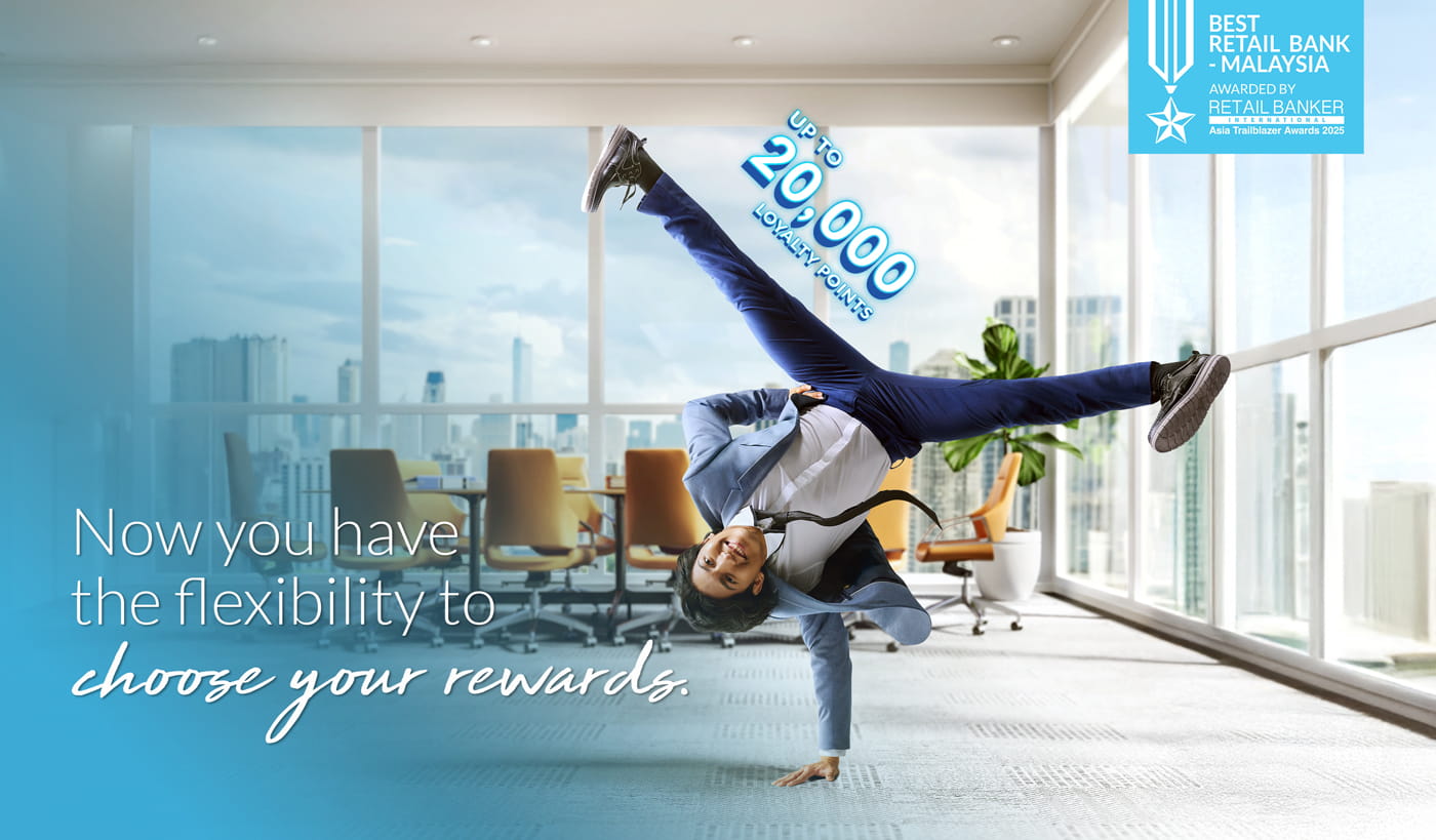 Enjoy Bonus Rates of up to 6.60% p.a. Simply deposit a minimum of RM2,000, then sign up for Joy@Work, pay bills, spend, convert, trade, finance or invest.
